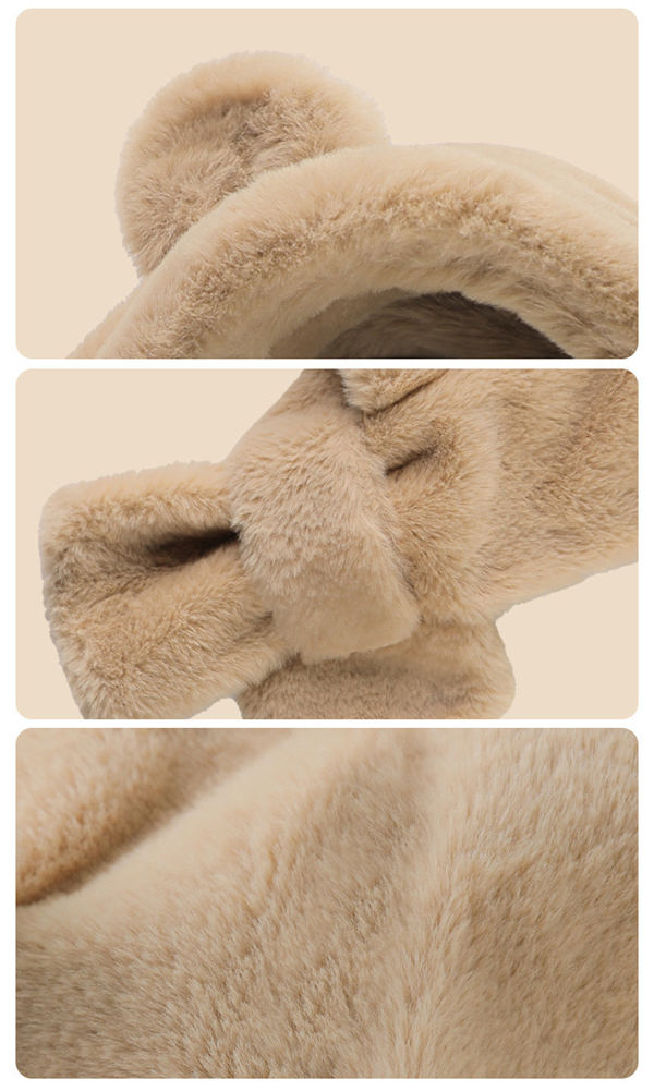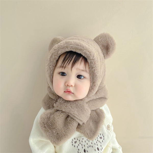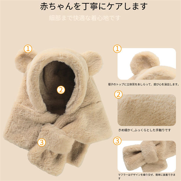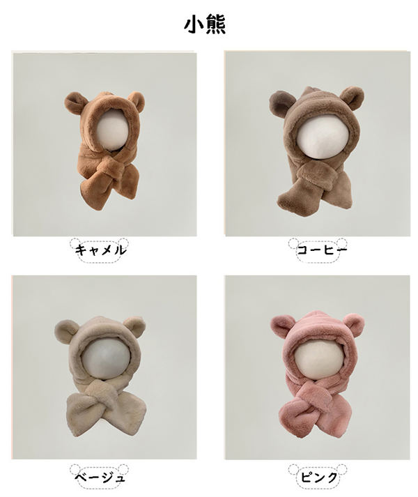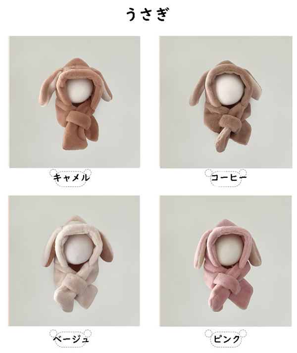 帽子 マフラー 一体 キッズ ベビー キッズ ベビー マタニティ 新作 小熊 うさぎ キャメル コーヒー ベージュ ピンク
