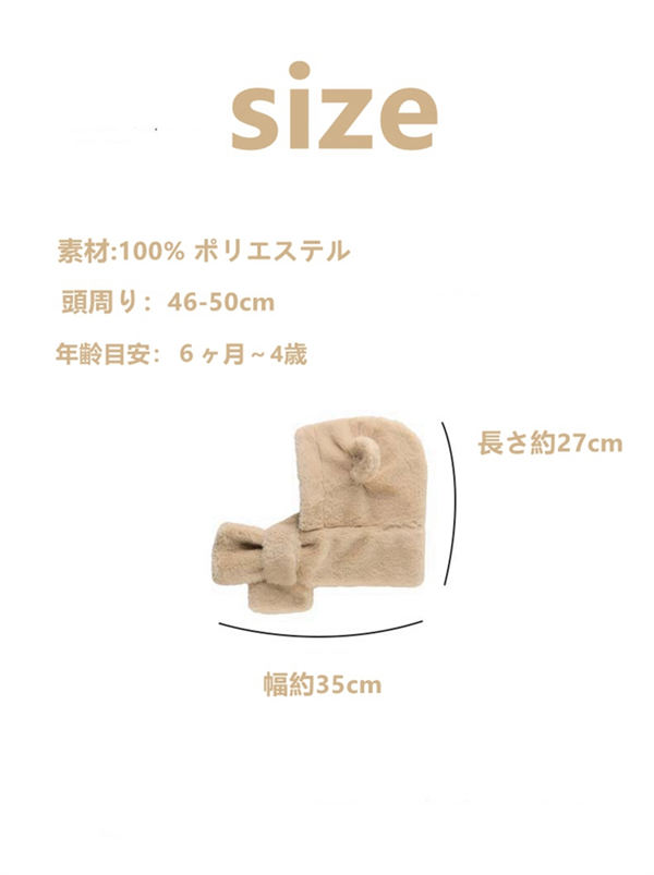 帽子はモコモコで、赤ちゃんのかぶり心地が良くて、子供の頭から首元までがふんわり包み込みの設計で、頭、耳、首をちゃんと保護してくれます。