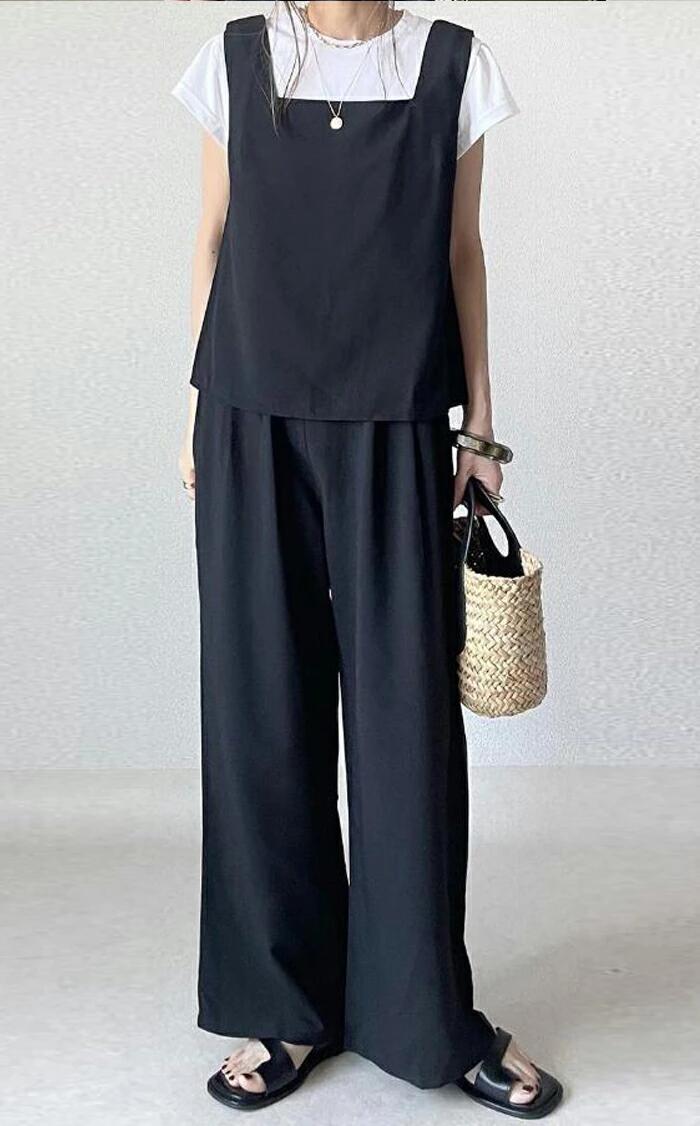 セットアップ ノースリーブ 綿麻混紡 レディースファッション 特集 S M L