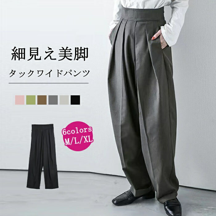 タックワイドパンツ レディース ボトム ボトムス パンツ 続々登場 M L XL ブラック ブラウン グレー ライトグレー グリーン ピンク