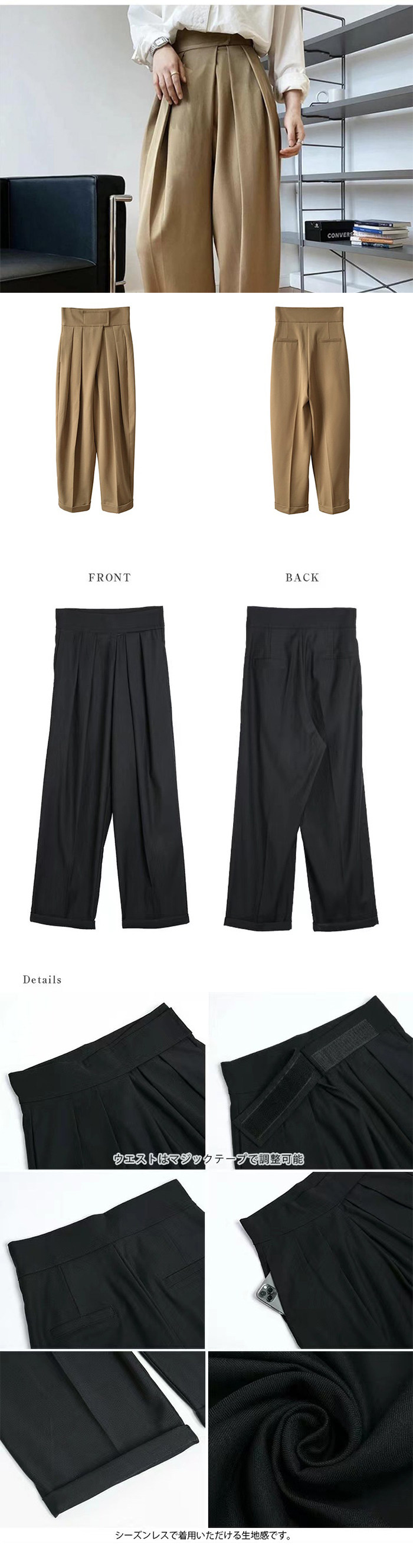 タックワイドパンツ レディース ボトムス 春 夏 イージーパンツ ワイドパンツ マジックテープ タック スラックス 美シルエット タックパンツ ハイウエスト ロング丈 通勤 オフィス カジュ きれいめ
