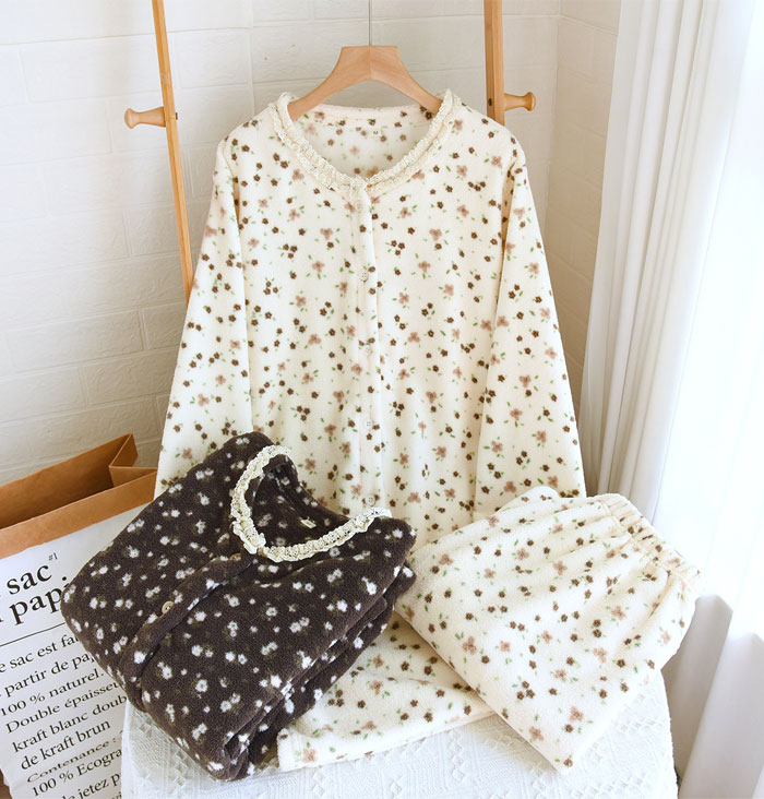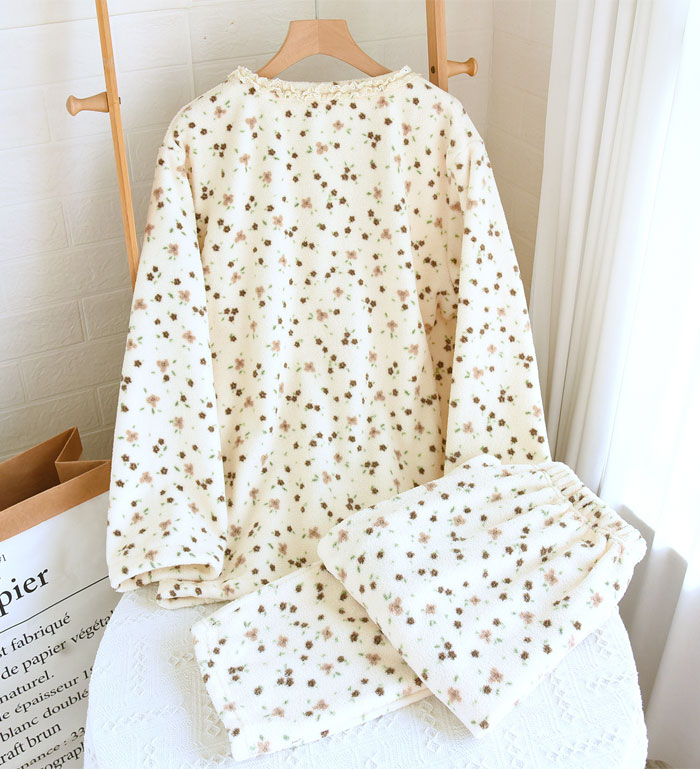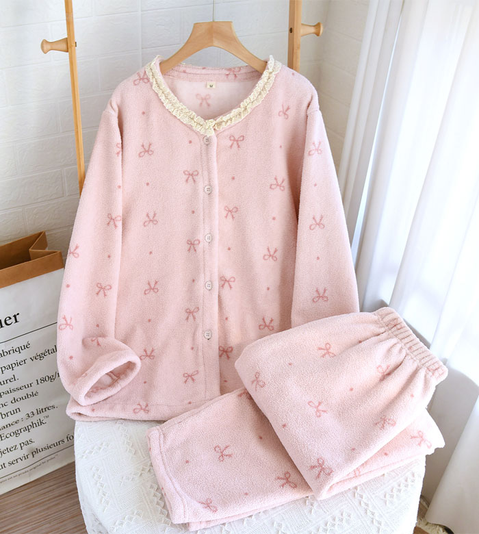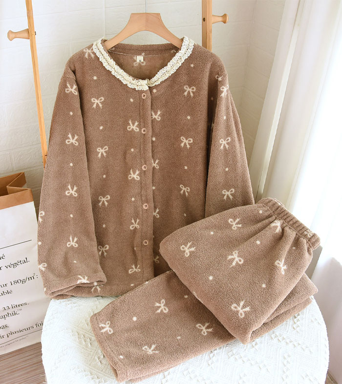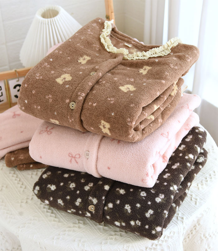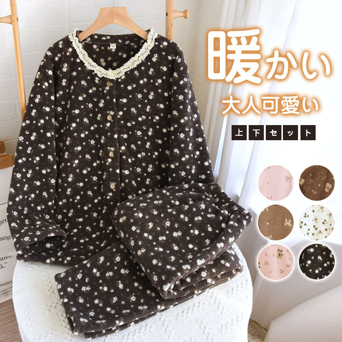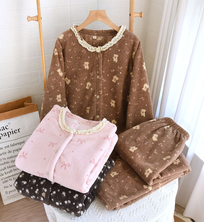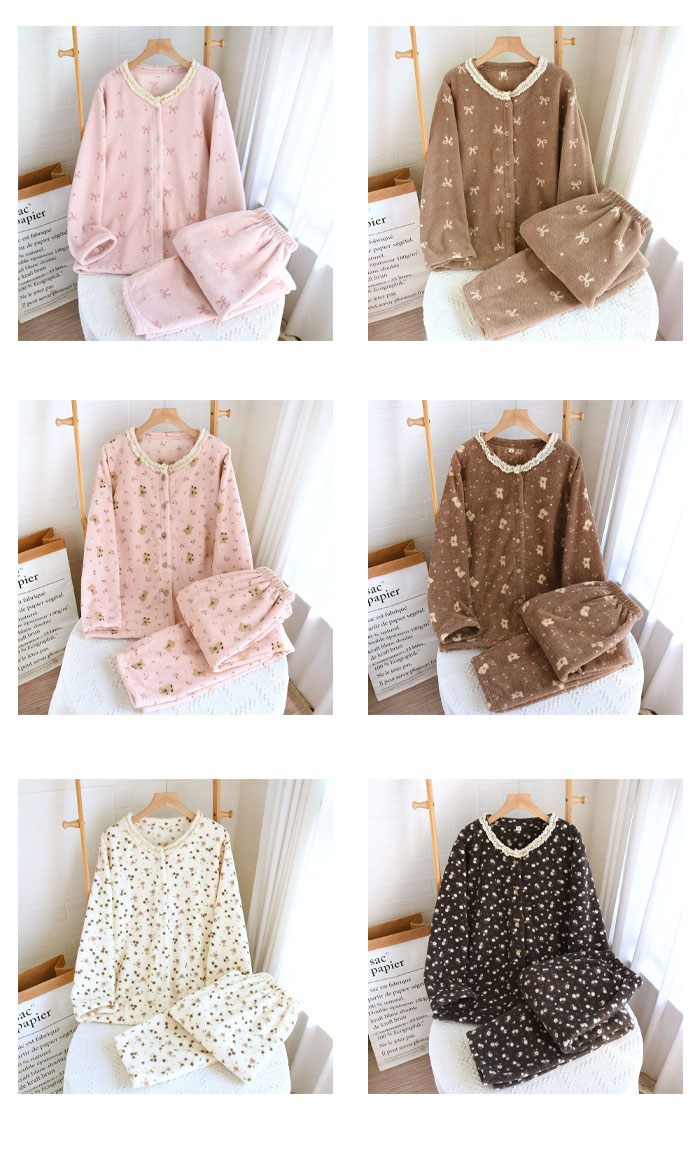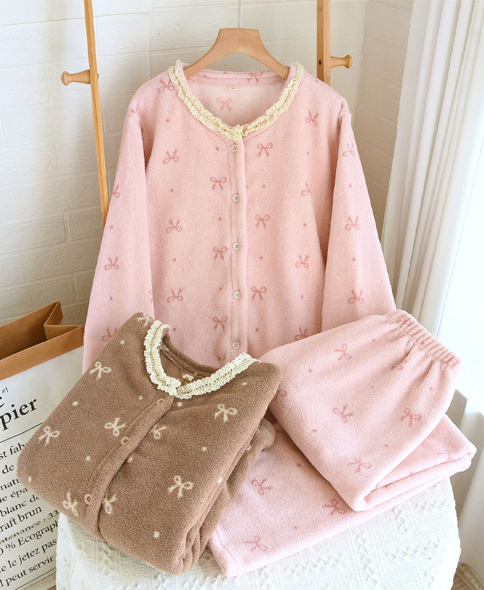 パジャマ レディース 上下セット 2点 インナー 下着 ナイトウエア 特集 M L XL ピンク-リボン柄 ブラウン-リボン柄 ピンク-小熊柄 ブラウン-小熊柄 米色-花柄 ダークグレー-花柄