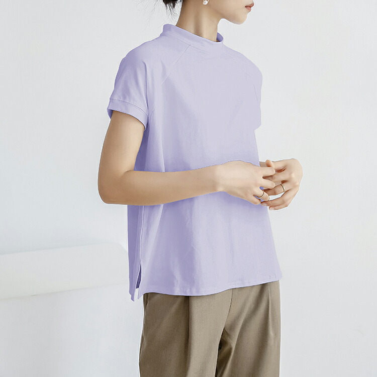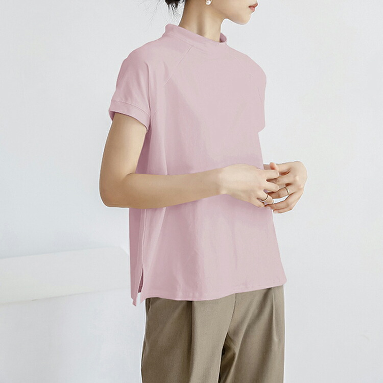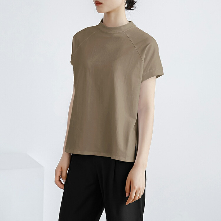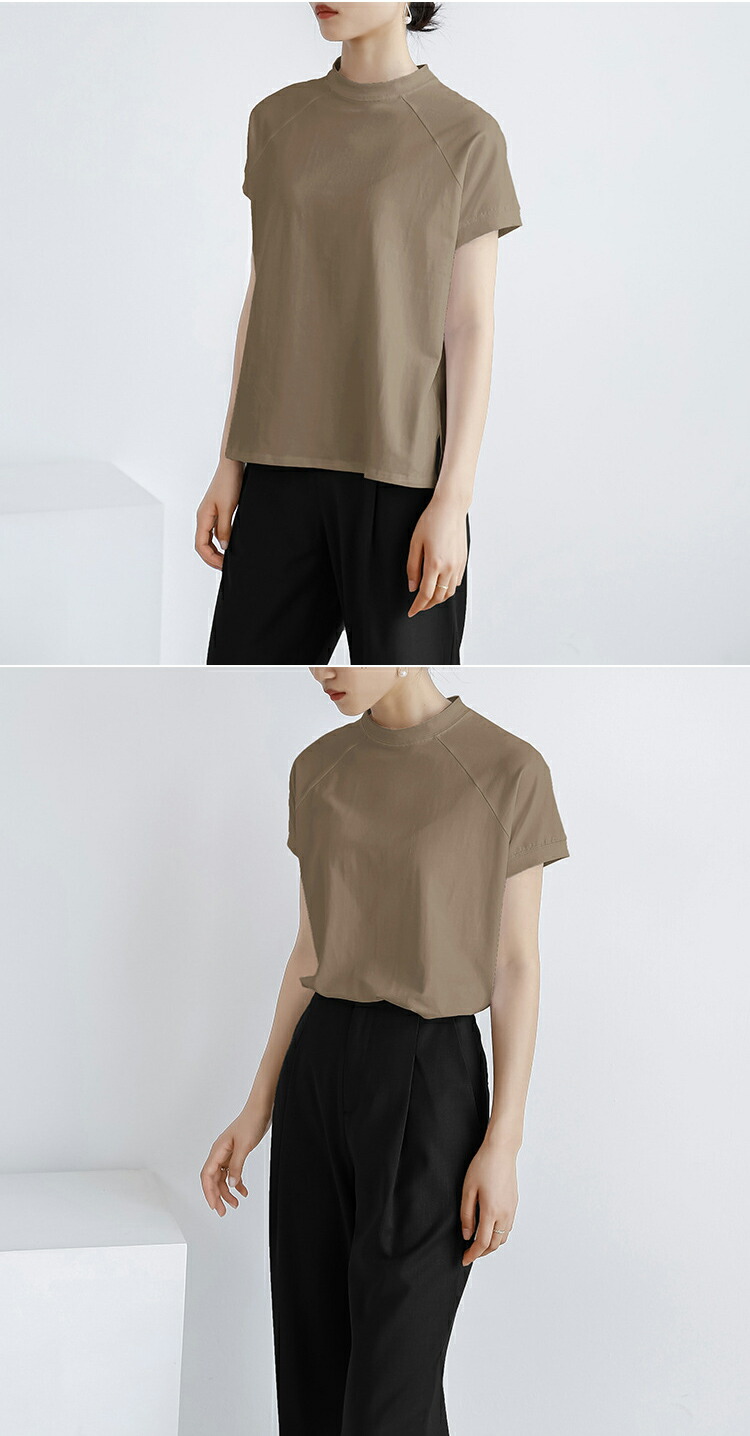 レディース トップス Tシャツ 綿混 レディースファッション 人気 M L ブラック ホワイト ブラウン ブルー ベージュ パープル グレー カーキ ピンク