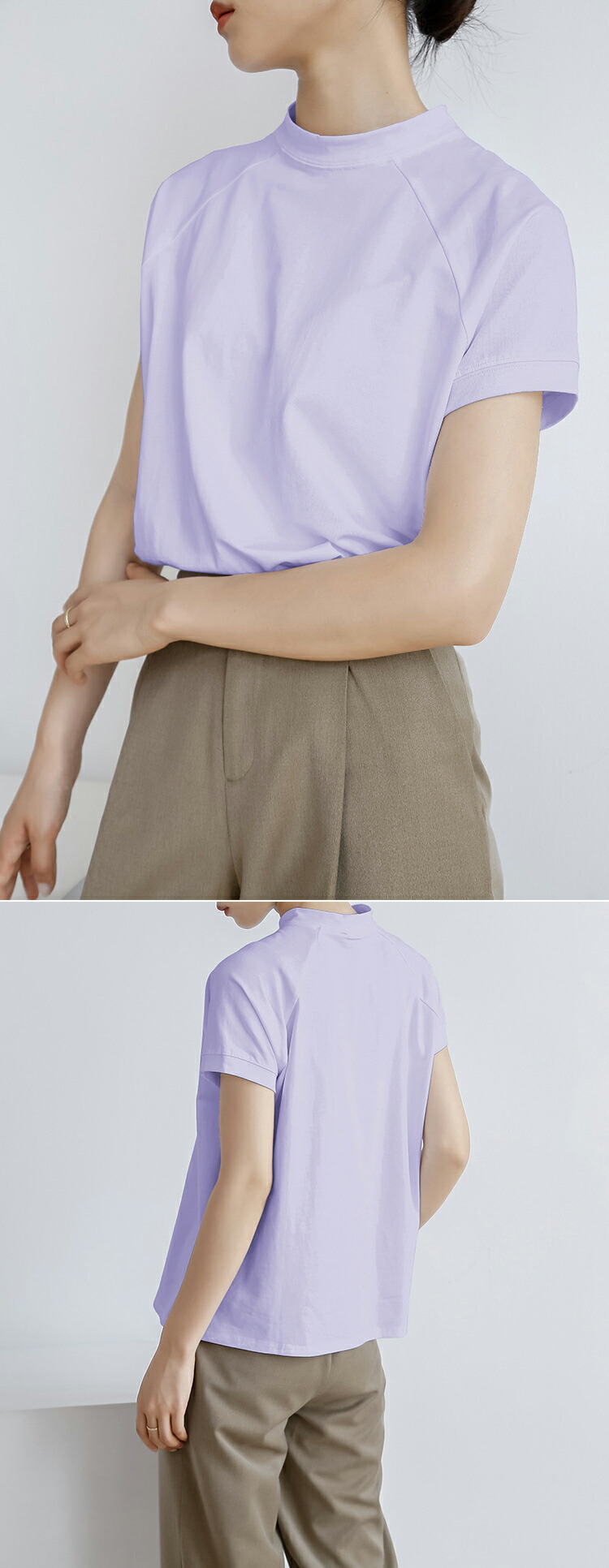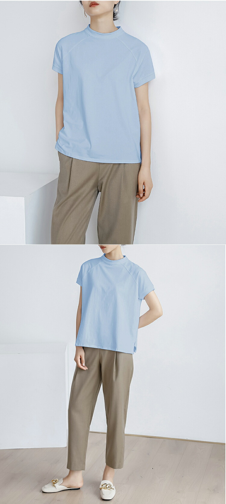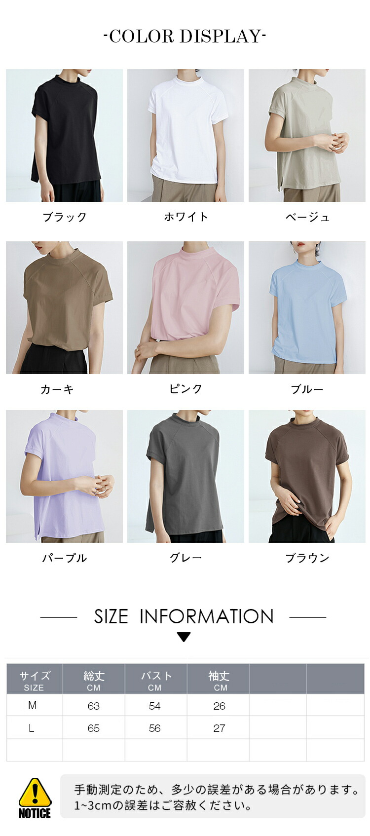 レディース トップス Tシャツ 綿混 レディースファッション 人気 M L ブラック ホワイト ブラウン ブルー ベージュ パープル グレー カーキ ピンク