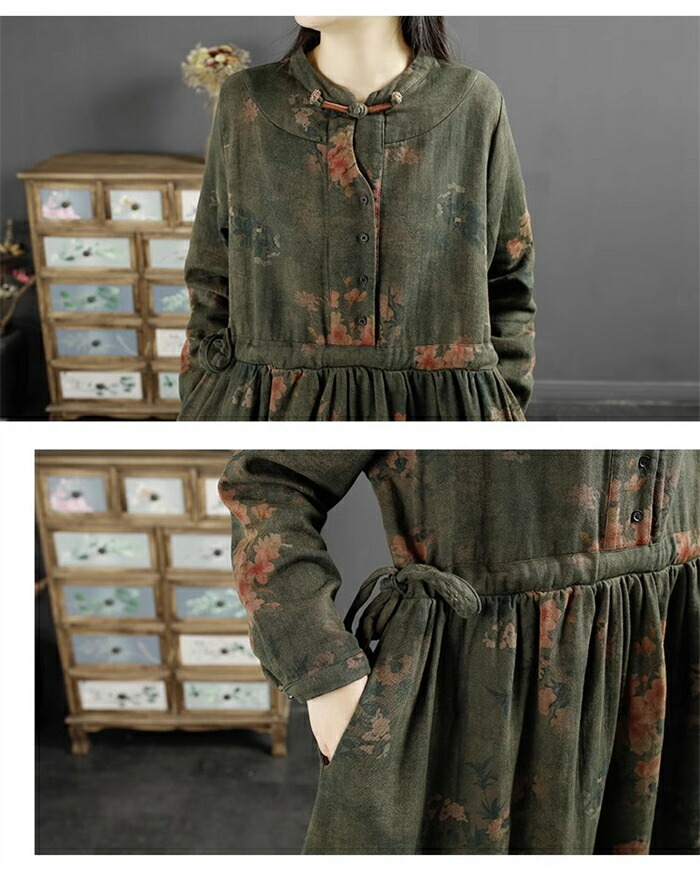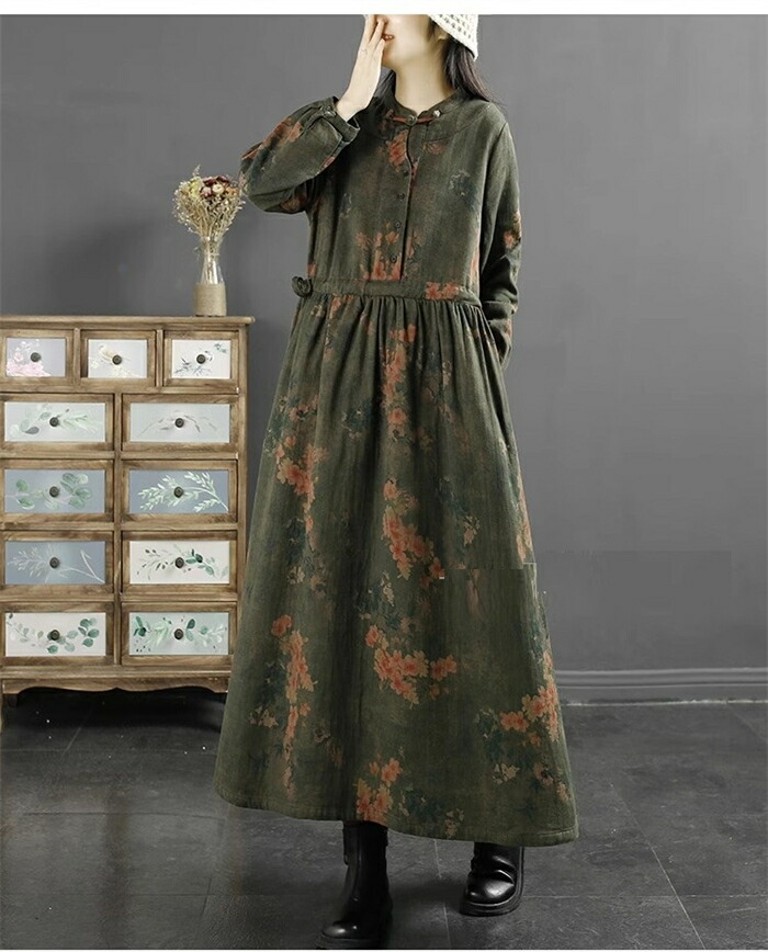 ロングワンピース 長袖 秋 レディース レディースファッション 新登場! M L XL 2XL オレンジ グリーン