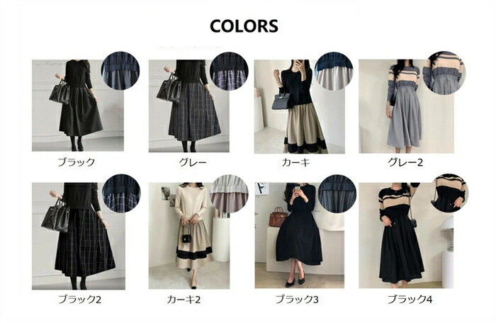 ワンピース 秋冬 きれいめ 長袖 秋 レディースファッション 続々登場 ブラック ブラック2 ブラック3 カーキ カーキ2 グレー グレー2 ブラック4