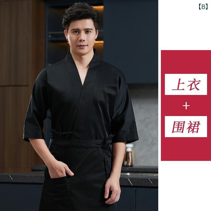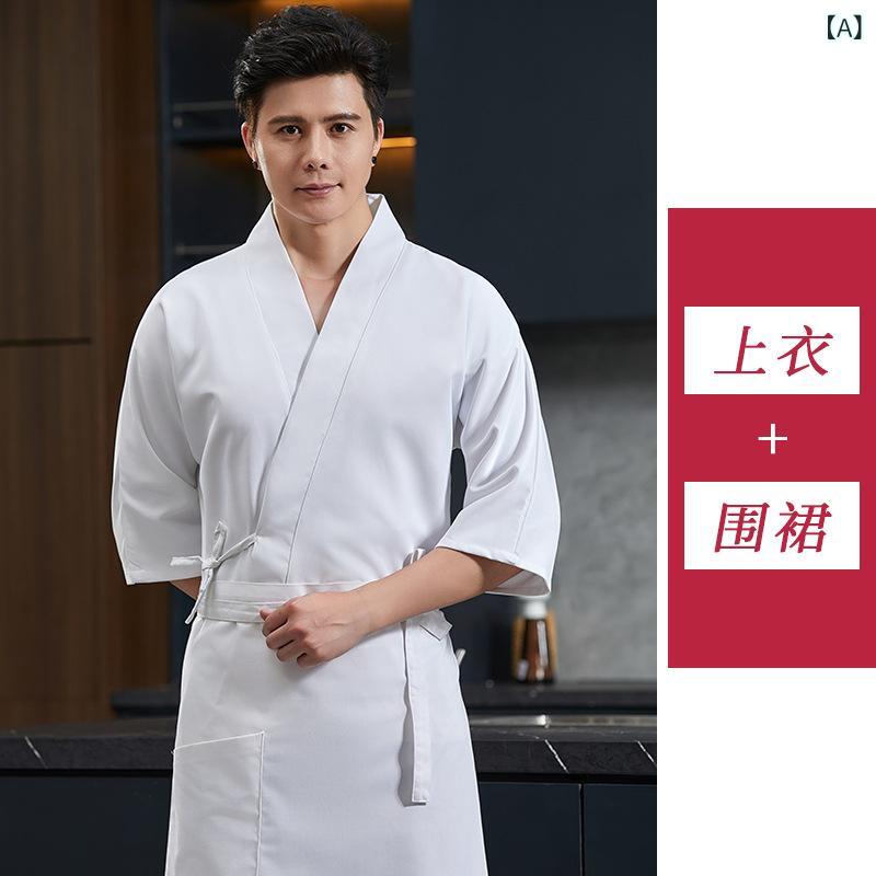 コックコート 男性用 和食 寿司 居酒 A:白トップス+エプロン B:黒トップス+エプロン M L XL XXL XXXL 4XL
