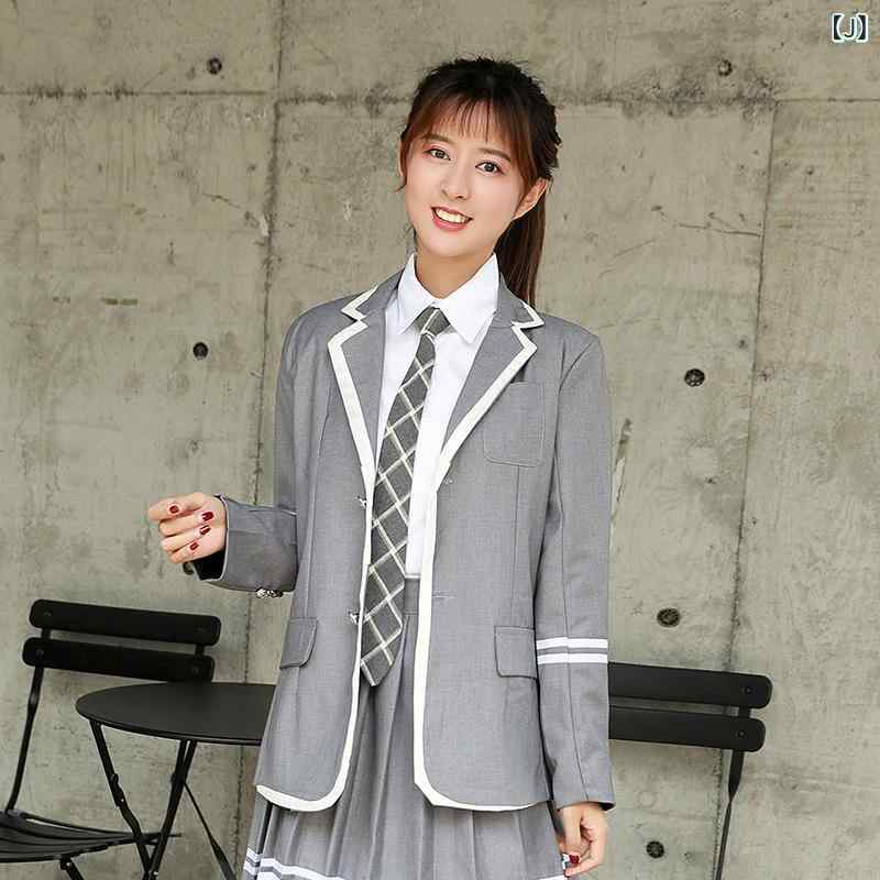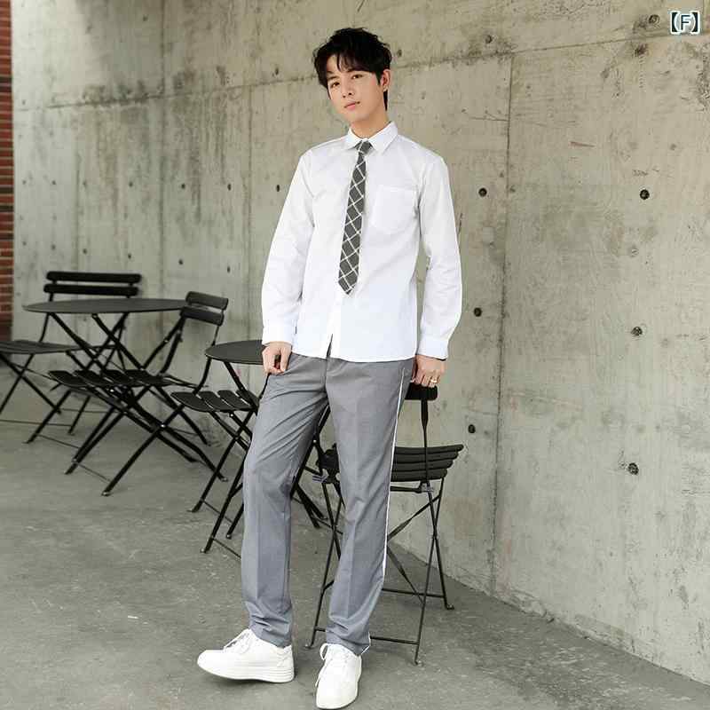 セットアップ スクールウェア レディー メンズファッション 通販 A:白半袖+グレー短スカート B:白半袖+グレー中スカート C:白半袖+グレー長ズボン D:白長袖+グレー短スカート E:白長袖+グレー中スカート F:白長袖+グレー長ズボン G:白長袖+短スカート3点 H:白長袖+中スカート3点 I:白長袖+長ズボン3点 J:グレー上着 K:白半袖+灰ネクタイ L:白長袖+灰ネクタイ M:男白半袖+灰ネクタイ N:男白長袖+灰ネクタイ XS S M L XL XXL XXXL 4XL