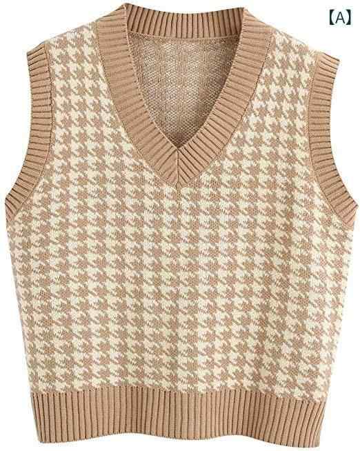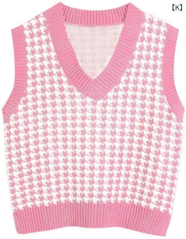 ニットベスト レディース 千鳥格子柄 レディースファッション 人気 A:カーキ B:赤 C:紫 D:黒 E:マゼンタ F:アイボリー G:杏 H:ワインレッド I:薄ピンク J:水色 K:ピンク S M L XL XXL XXXL
