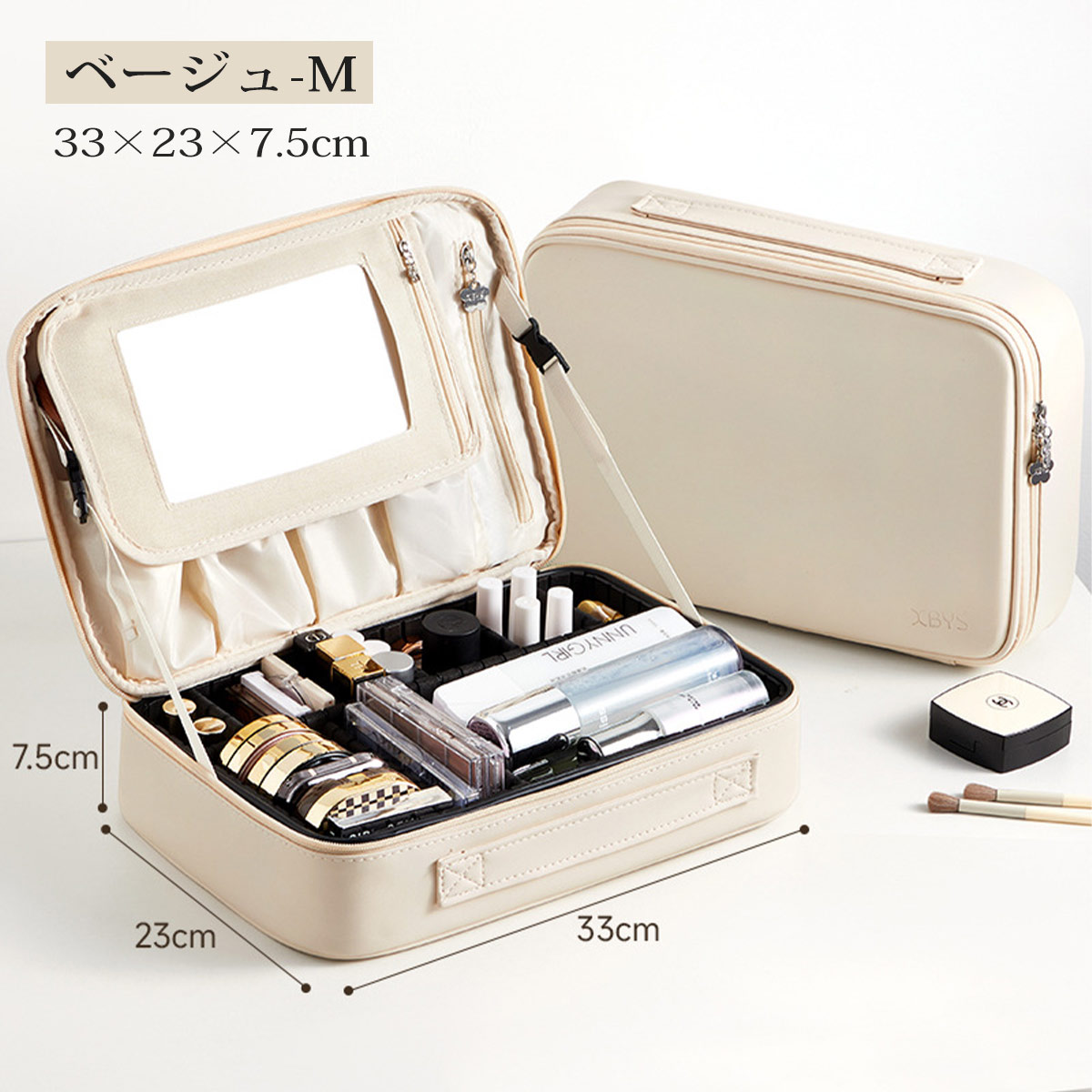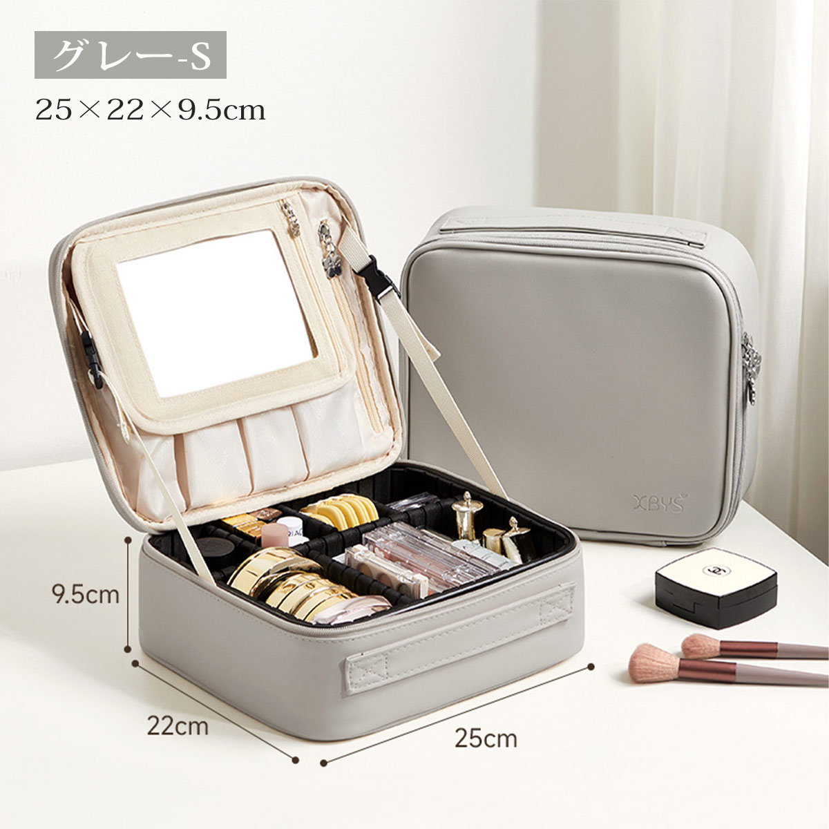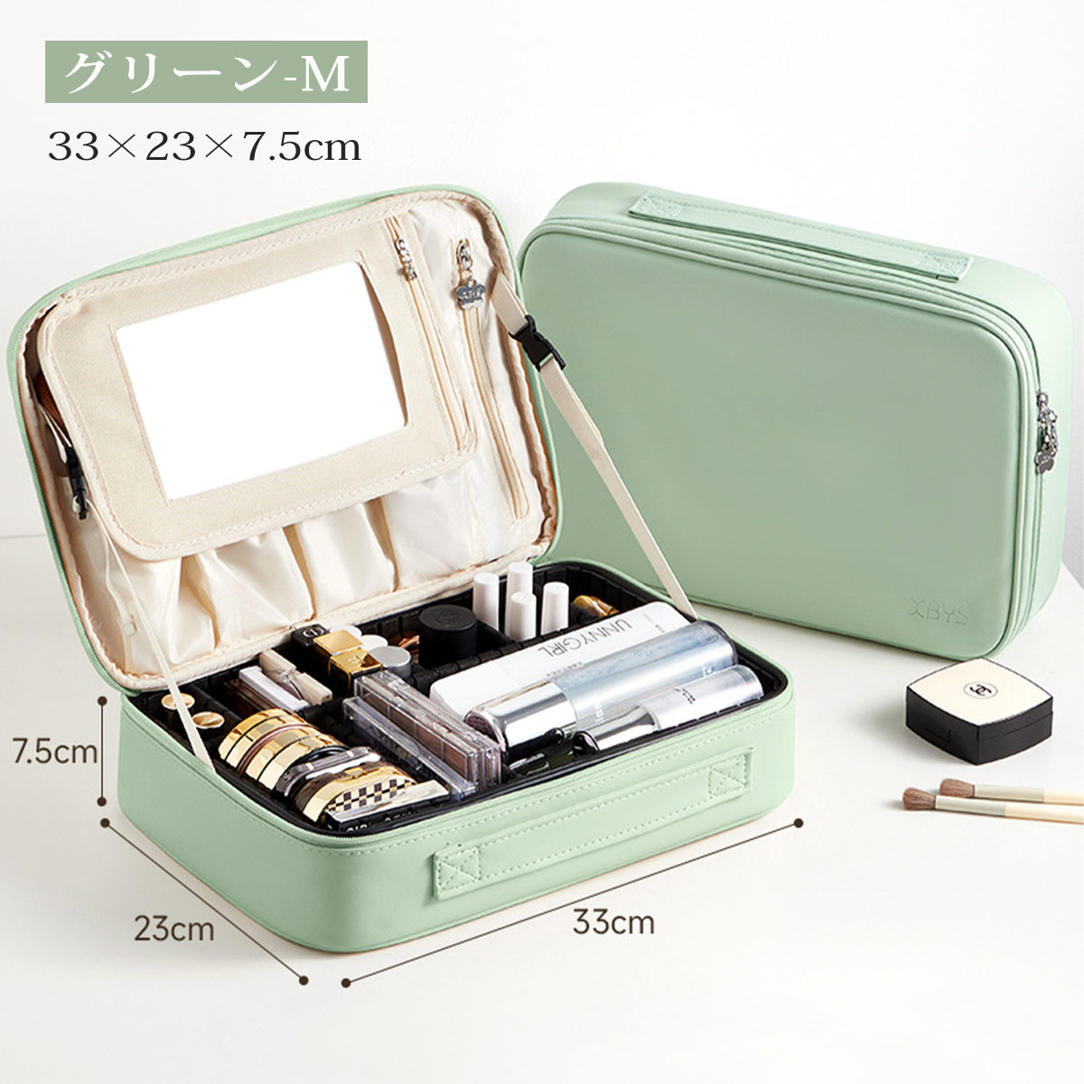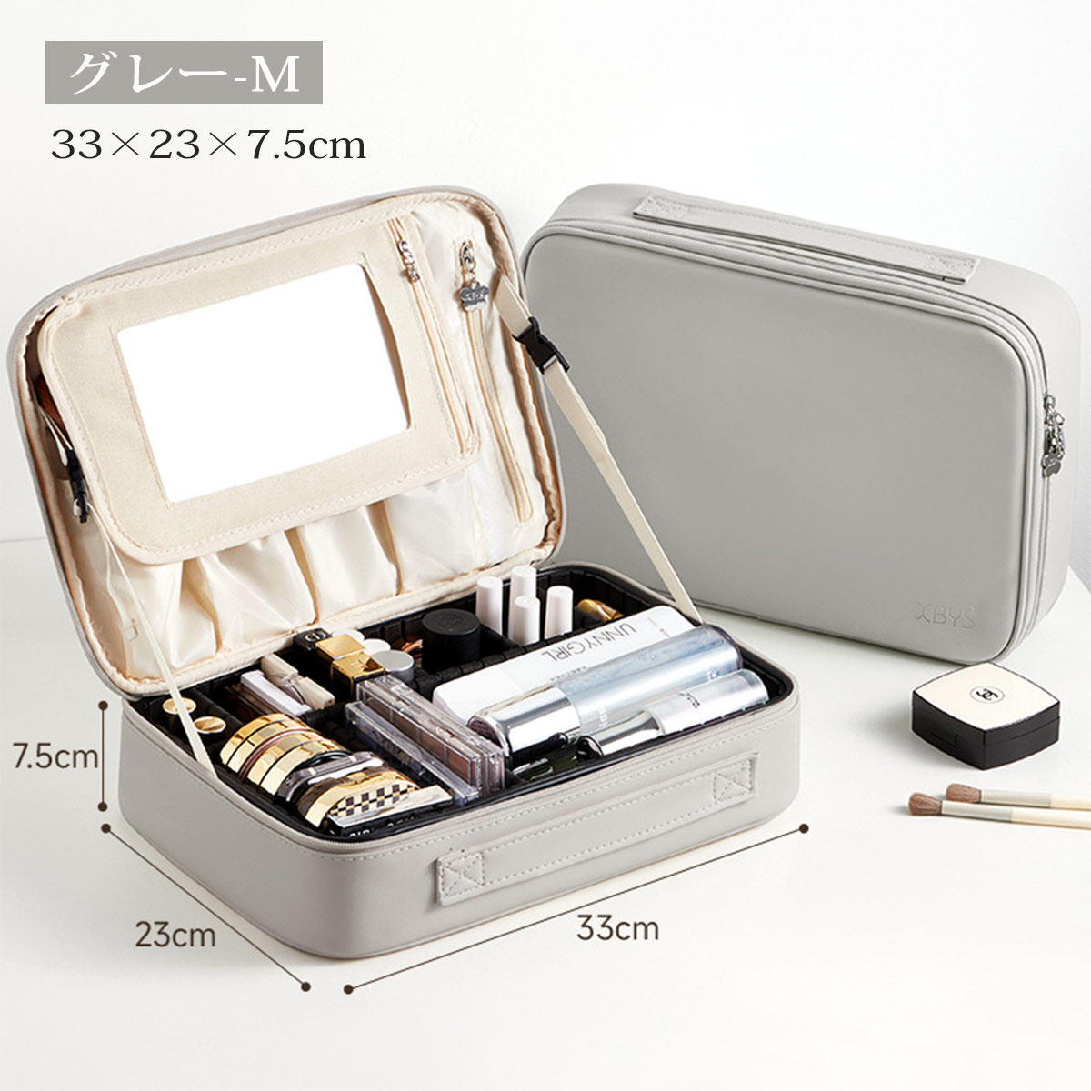 メイクボックス 鏡付き 大容量 持ち運 バッグ 小物 ブランド雑貨 超目玉商品 ベージュ グレー ピンク ブルー グリーン S M
