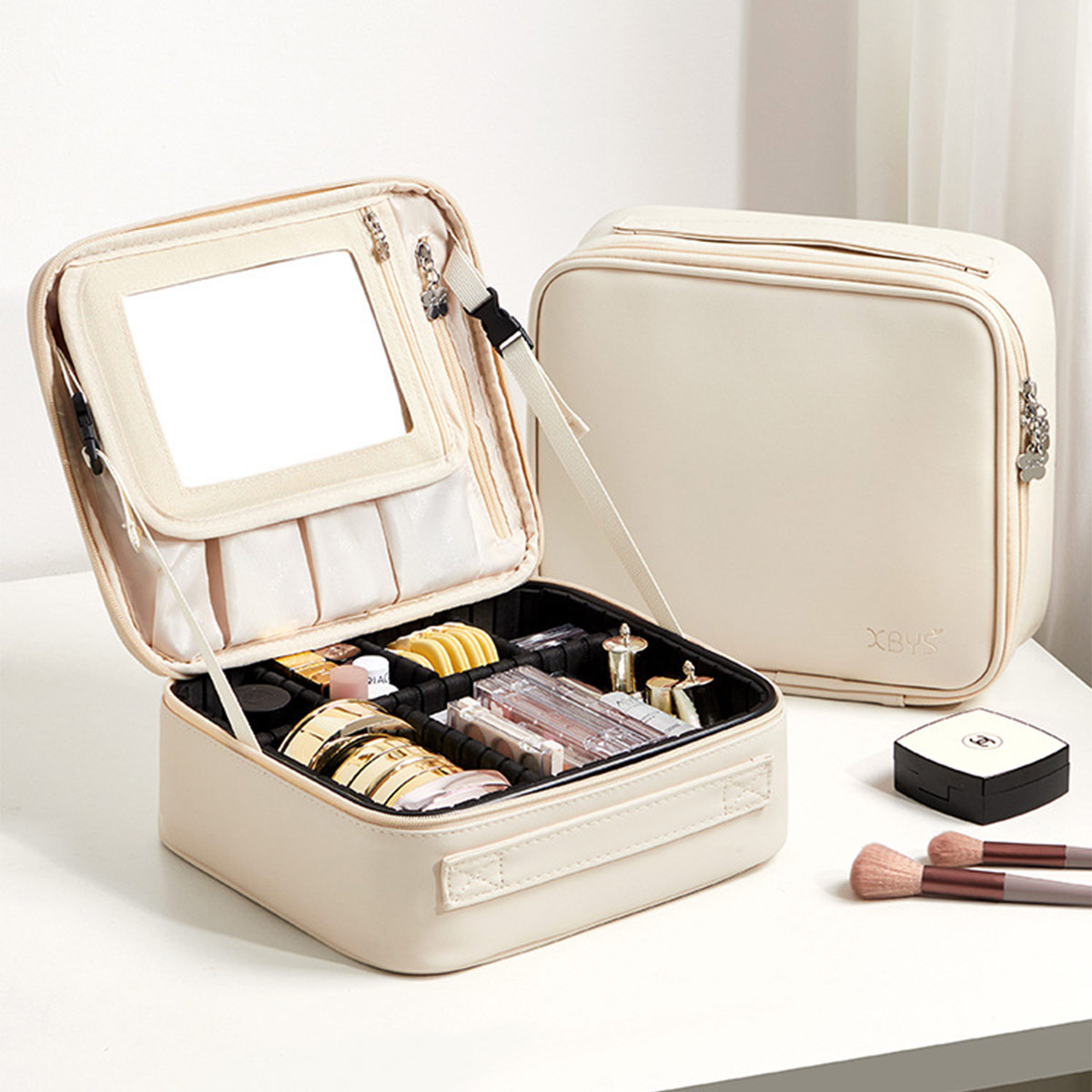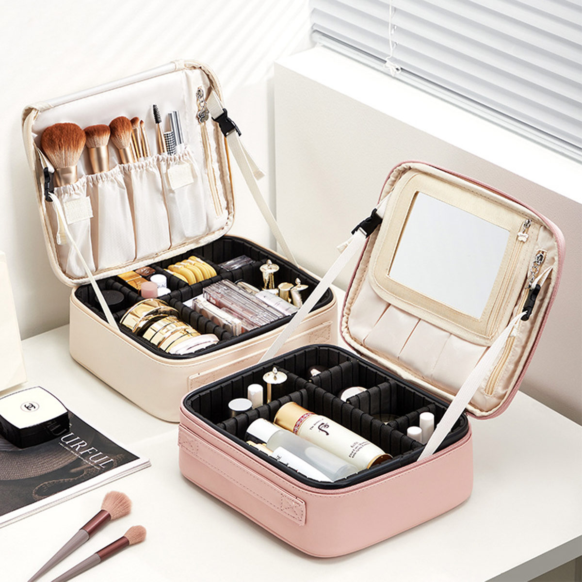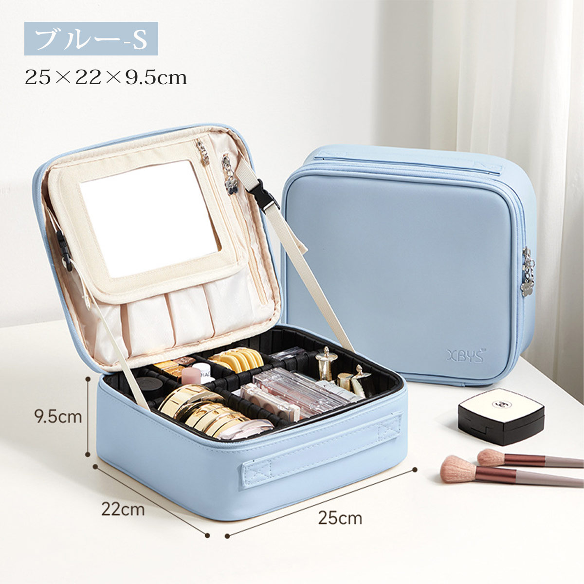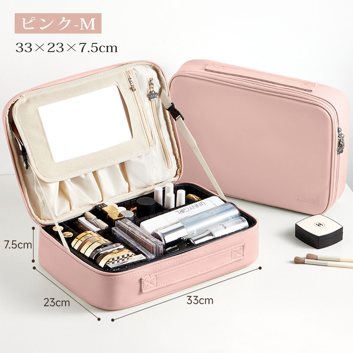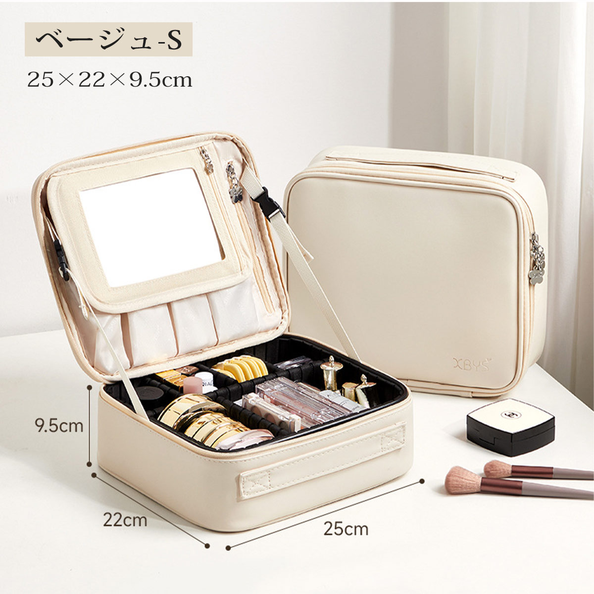 メイクボックス 鏡付き 大容量 持ち運 バッグ 小物 ブランド雑貨 超目玉商品 ベージュ グレー ピンク ブルー グリーン S M
