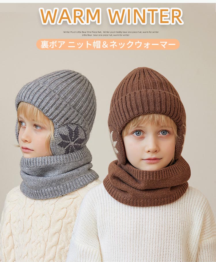 子供用 ニット帽 ネックウォーマー 2点セット 耳まで 暖かい 裏ボア あったか キッズ ニット帽子 男の子 女の子 耳当て ジュニア 冬 秋冬 保 裏起毛