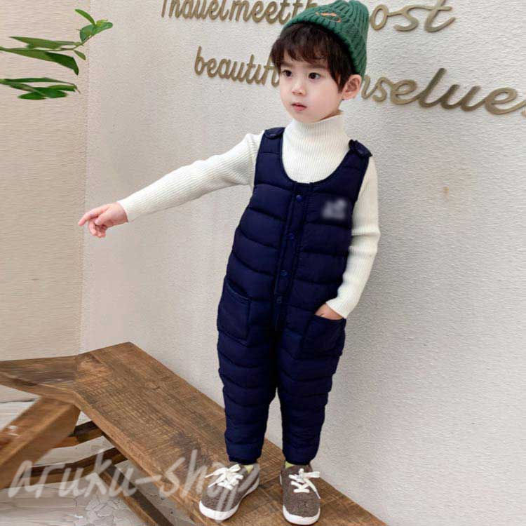 ダウンパンツ ダウン 雪遊び 冬 長ズ キッズ オーバーオール 新登場! ブラック ネイビー ピンク グリーン 80 90 100 110 120