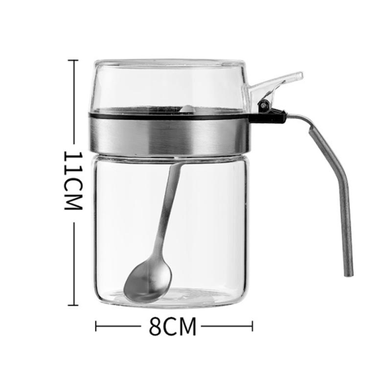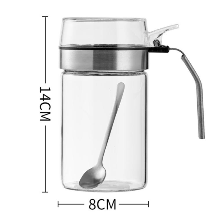 高品質な耐熱ガラス製のスプーン付き調味料ポットです。
