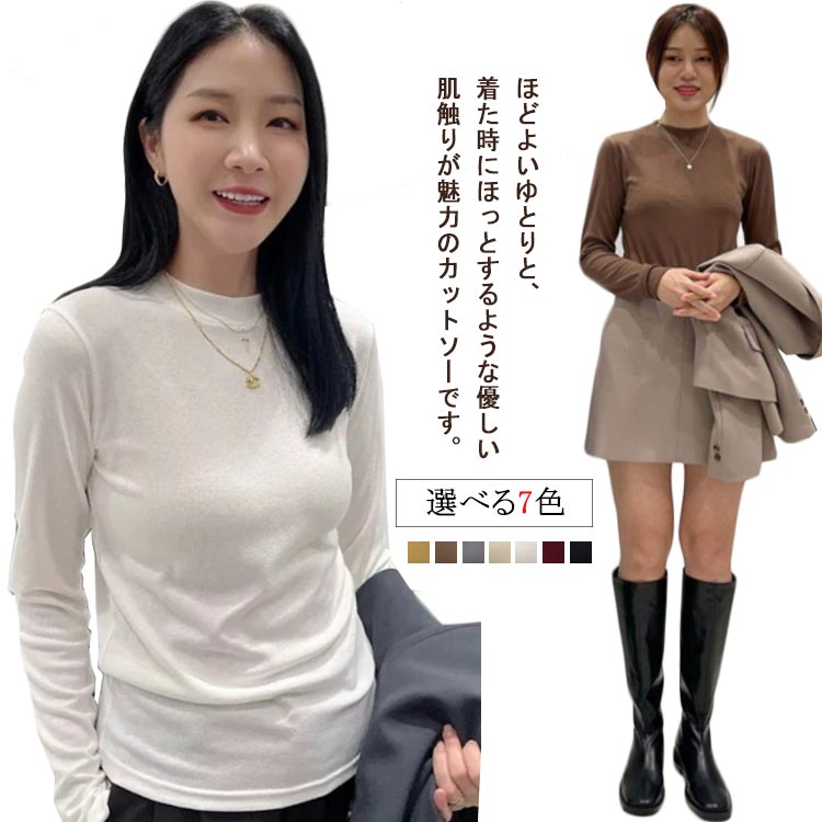 カットソー 発熱 冬 暖かい プチハイ トップス シャツ ブラウス 新登場! ブラック ホワイト レッド アーモンド ダークグレー コーヒー イエロー L XL