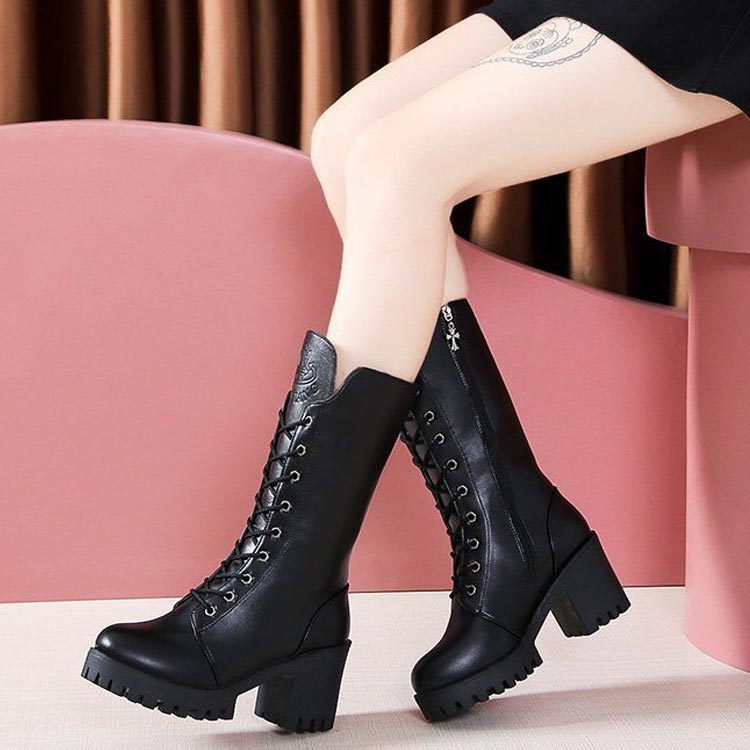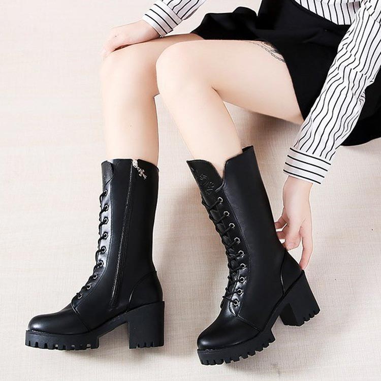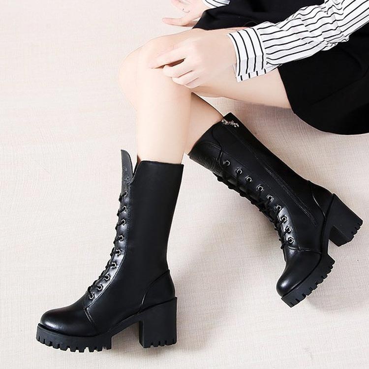 ミドル丈 PU 編み上げエンジニア レディース レースアップブーツ 編み上げワークブーツ サイドジップ 厚底 ハイヒール チャンキーヒール 美脚 編み上げ 大きいサイズ 太ヒール