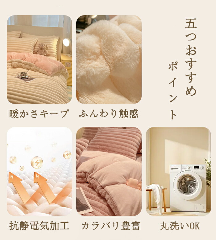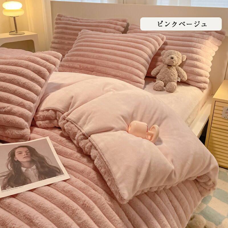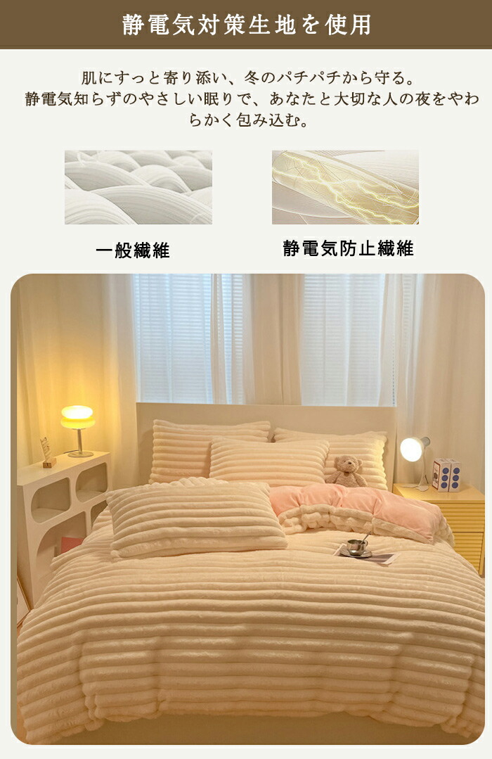 冬の寝室を優しく包み込む、保温性の高いボア寝具。可愛いデザインで、防寒対策はもちろん、お部屋の雰囲気も明るくします。