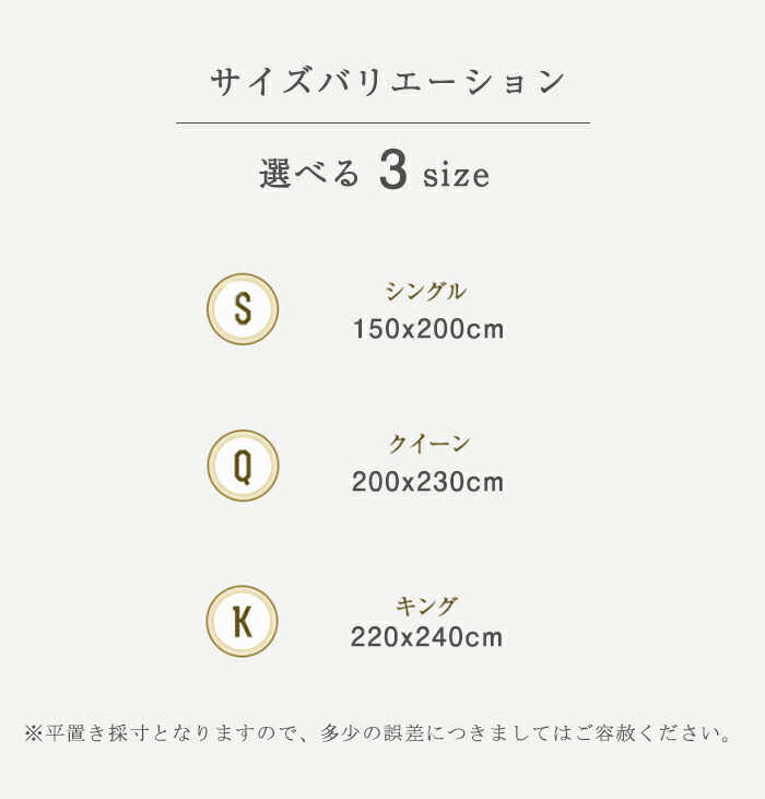 シングルサイズからキングサイズまで、ご家庭のベッドに合わせて選べる充実のラインナップ。