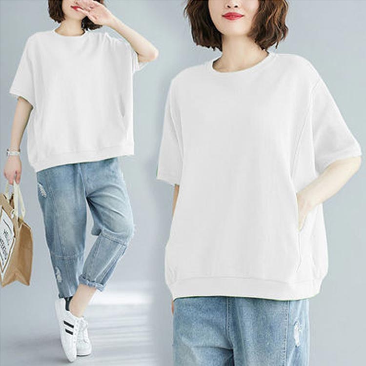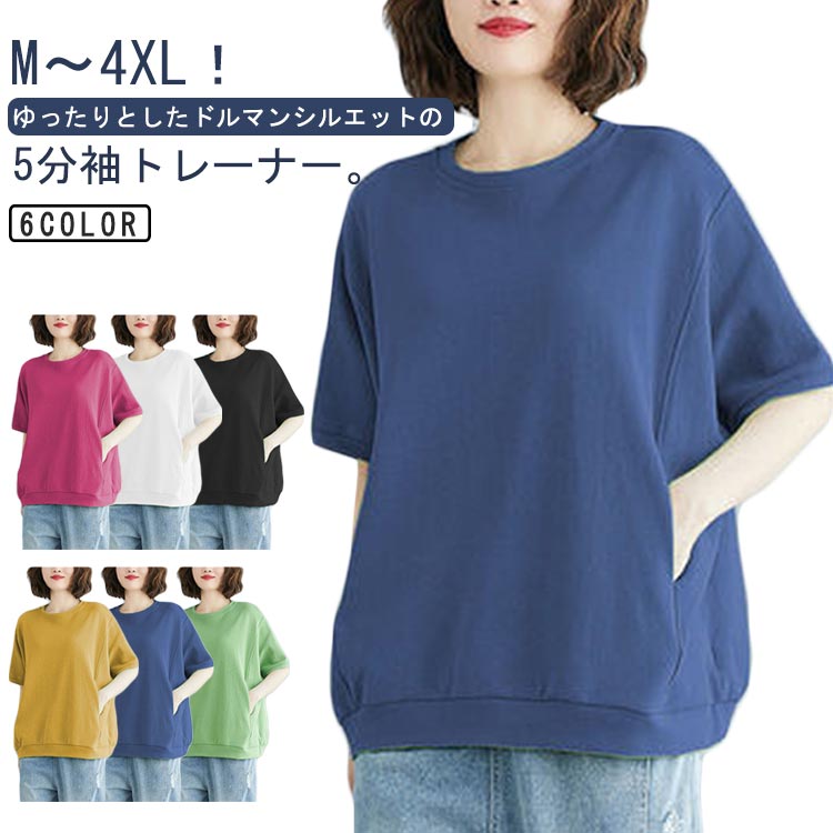 Tシャツ トレーナー 半袖 無地 レデ トップス スウェット トレーナー 特集 ホワイト ブラック ローズレッド グリーン ブルー イエロー M L XL 2XL 3XL 4XL