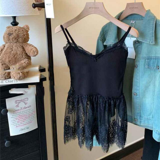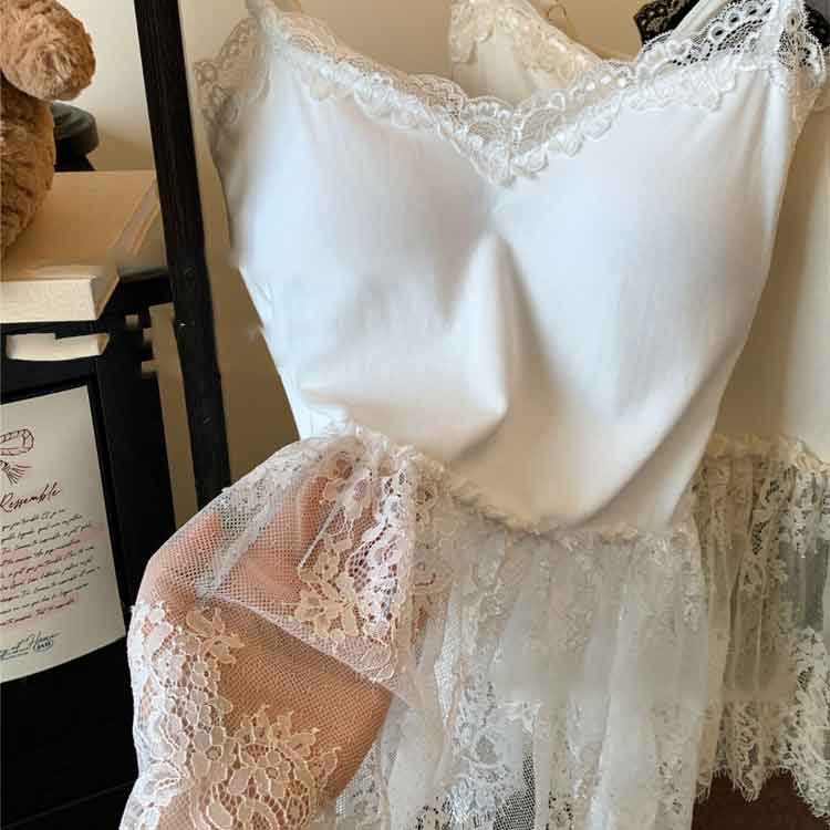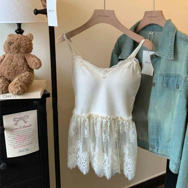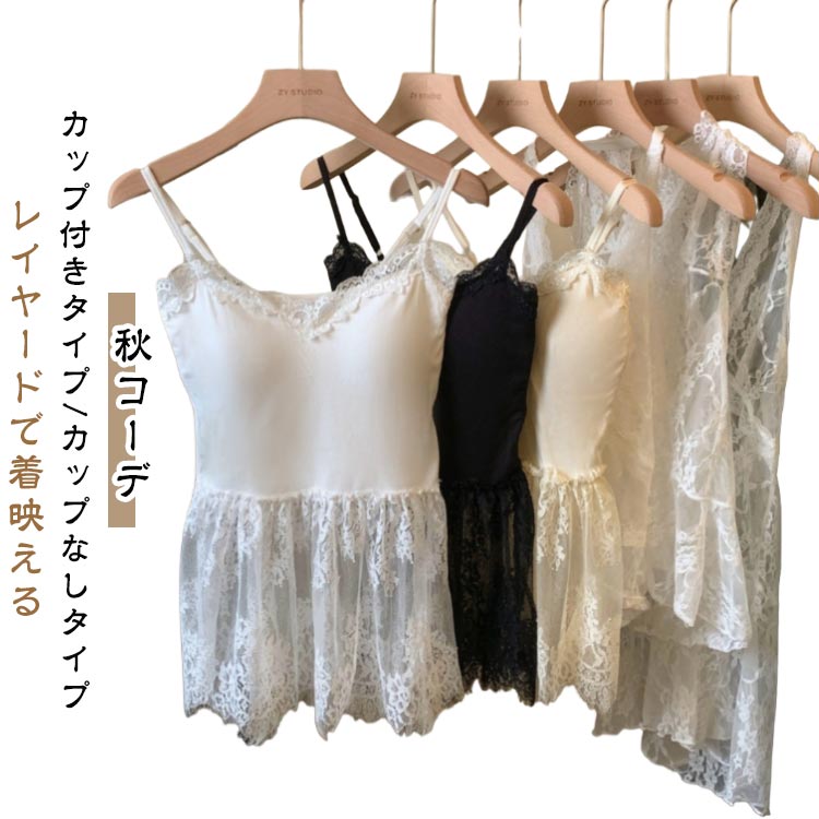 ノースリーブ ロング丈 ショート 体型カバー インナー 秋コーデ レース レイヤード 重ね着 キャミソール レディース タンクトップ トップス 無地 綿 カップ付き お尻隠し 裾レース ノースリー 裾