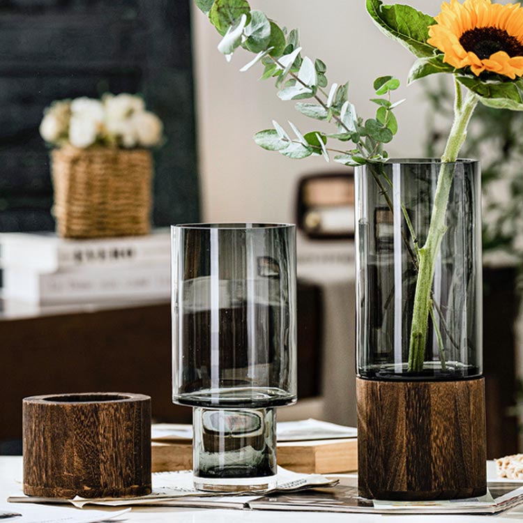 大きい 木製 一輪挿し フラワーベース グレー グリーン 口径12cm×底径12cm×高さ24.5cm 口径12cm×底径12cm×高さ30.5cm 口径12cm×底径12cm×高さ36cm