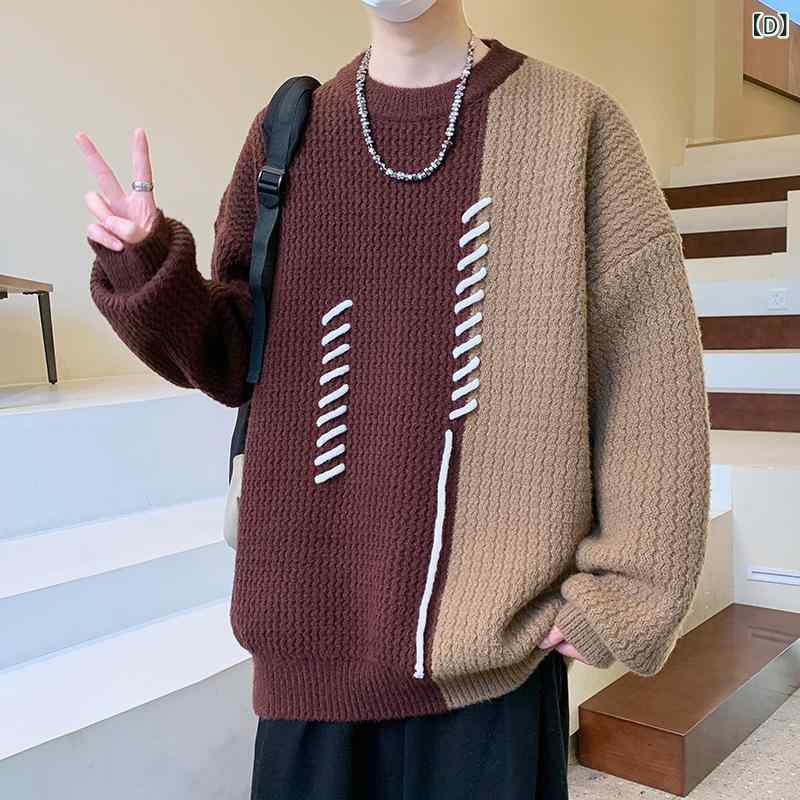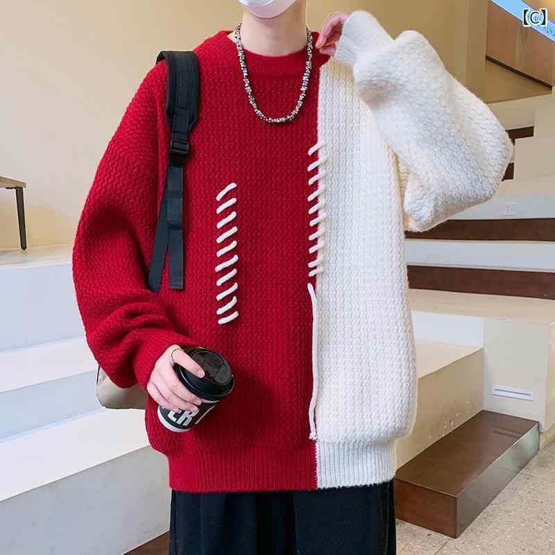 ニット メンズ 丸首 バイカラー 切り ズボン パンツ 早い者勝ち A:グレー B:ブラック C:レッド D:コーヒー M L XL 2XL 3XL 4XL