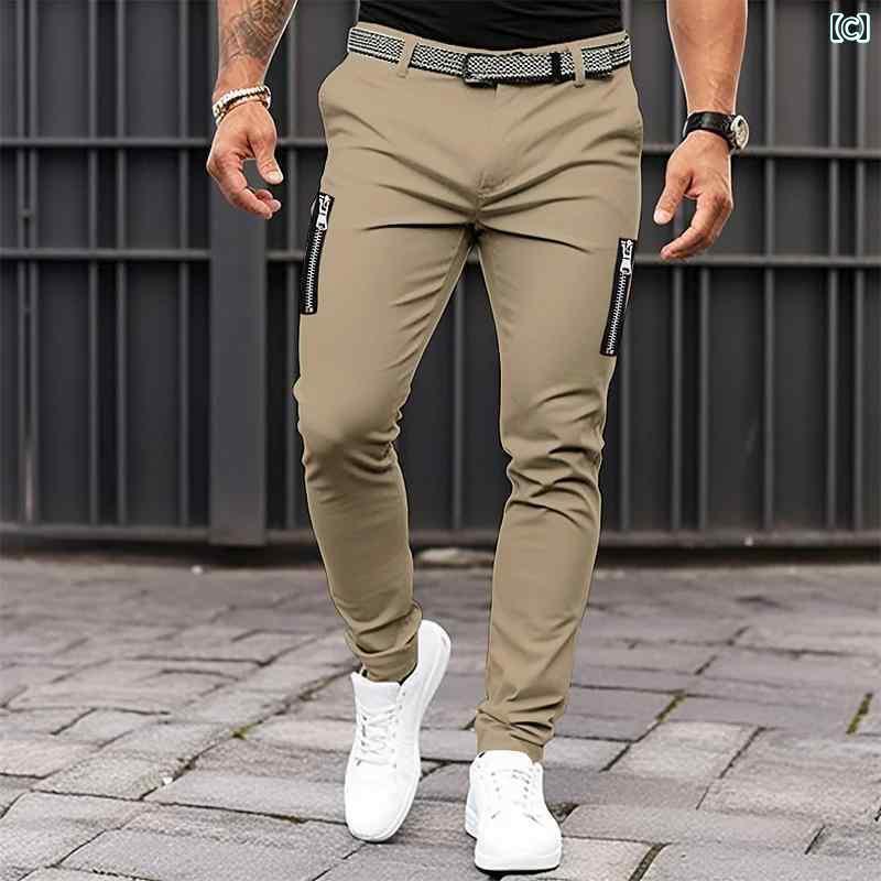 メンズ 無地 タイト カジュアル パン ズボン パンツ 新登場! A:ライトグレー B:ブラック C:カーキ D:ダークグレー S M L XL XXL コード XXXL コード