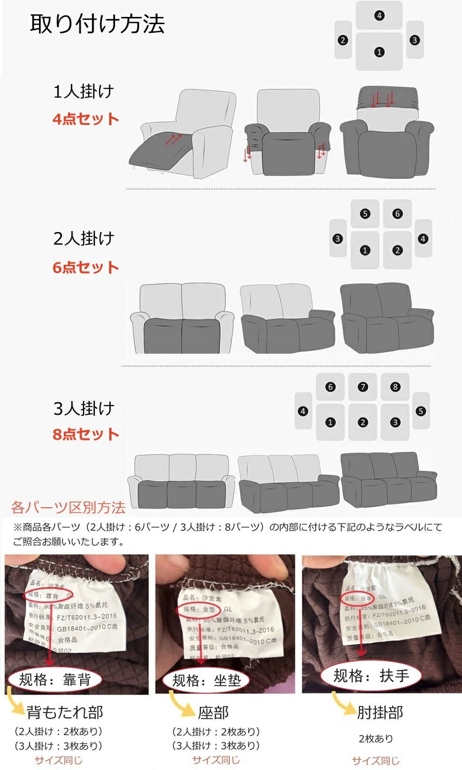 リクライニングソファ カバー 電動ソフ ベージュ ブラウン グレー ネイビー ブルー グリーン キャラメル ピンク 1人掛け 2人掛け 3人掛け