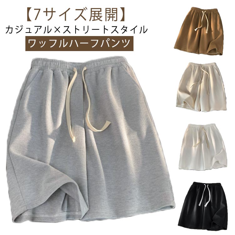 ハーフパンツ メンズ ジュニア ワッフ ズボン パンツ 続々登場 ブラック カーキ アプリコット グレー ホワイト M L XL 2XL 3XL 4XL 5XL