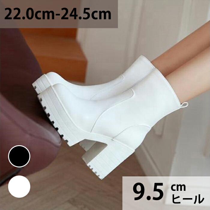 ショート ブーツ ラウンドトゥ レディース 厚底 9.5cmヒール サイドファスナー スタイルアップ ハイヒール チャンキーヒール 美脚 細見せ 靴 痛くない 履きやすい 黒 白 女生 英国風ブーツ