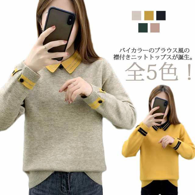全5色 バイカラー セーター 襟付き トップス ニット セーター セーター 早い者勝ち ブラウン ピンク グリーン ブラック イエロー S M L XL 2XL
