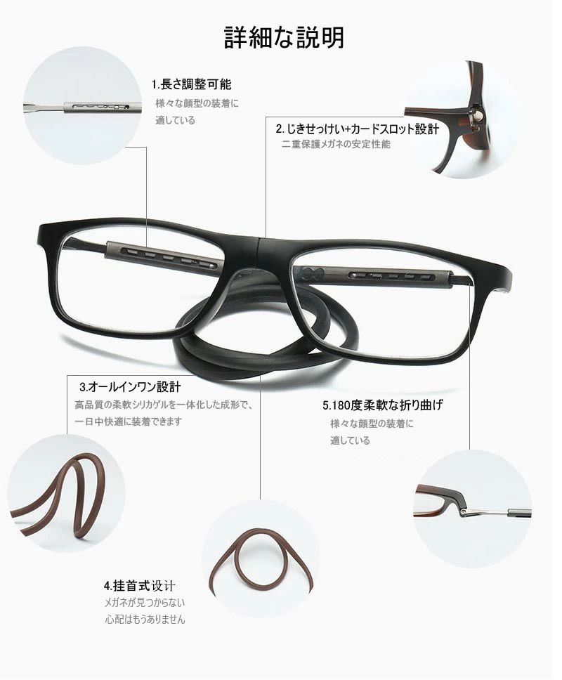 紛失防止老眼鏡 強力マグ スマート 首 眼鏡 サングラス 老眼鏡 人気 ダークブラウン レッド ブルー ネイビー掛け ブラック グレー +1.00 +1.50 +2.00 +2.50 +3.00 +3.50 +4.00