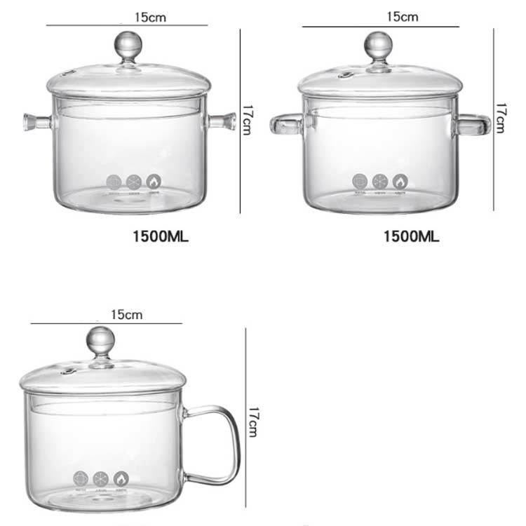 ガラス鍋 透明調理鍋 両手鍋 耐熱ガラ typeA(1500ml) typeB(1500ml) typeC(1500ml)