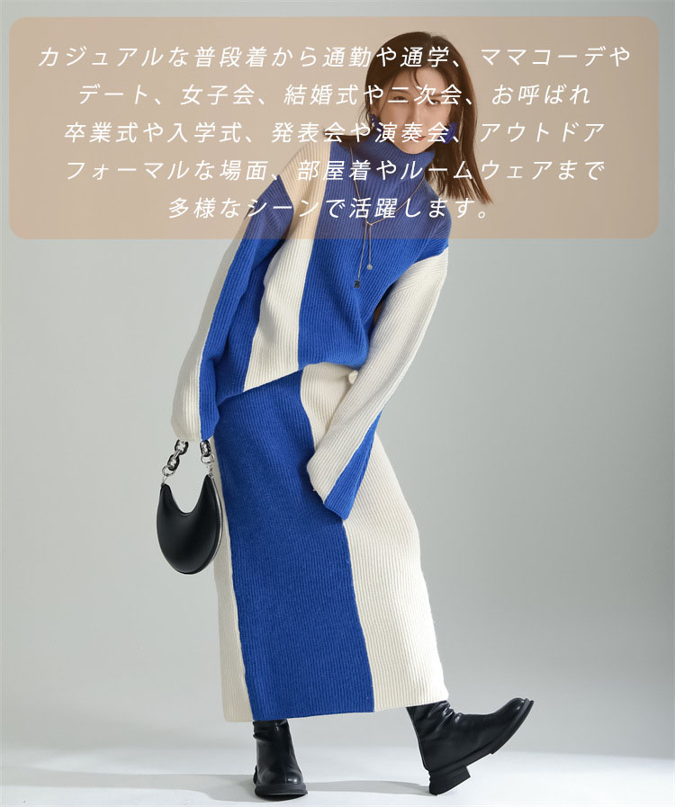 検索関連キーワード(商品の説明ではありません):ニットセットアップ レディース スカートセット 秋冬 厚手 ハイネック ニットアップ 配色セーター タイトスカート 上下セット 2点セット リブニット ボトルネック ロングスカート ゆったり 着回し ニットスカート ウエストゴム あったか シンプル