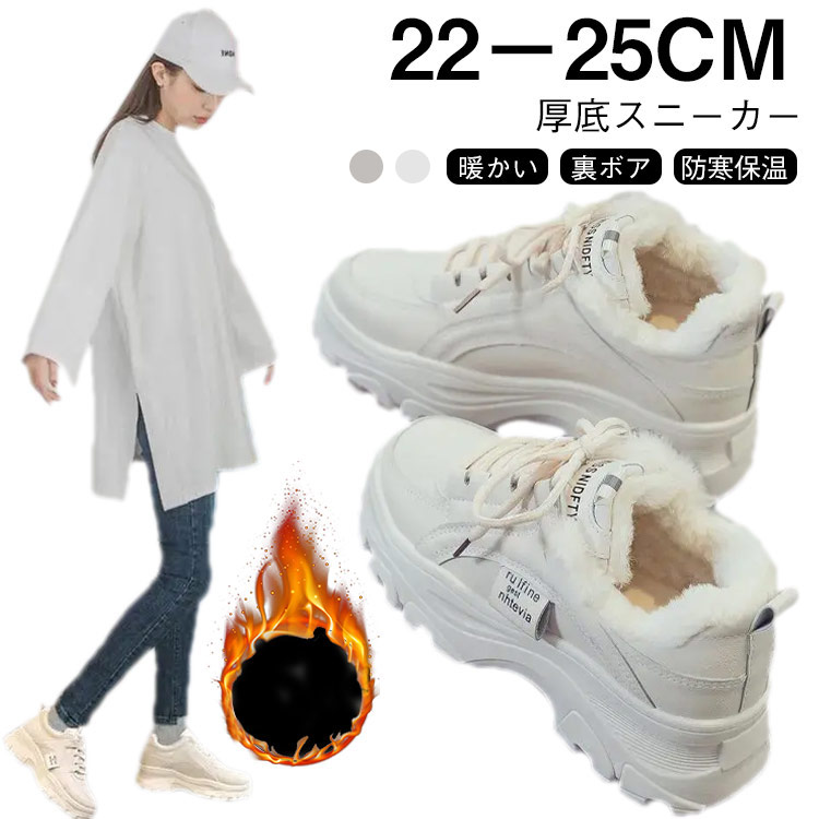厚底スニーカー レディース 暖かい 裏 レディース靴 スニーカー 人気 ホワイト ベージュ 34(22.0cm) 35(22.5cm) 36(23.0cm) 37(23.5cm) 38(24.0cm) 39(24.5cm) 40(25.0cm)