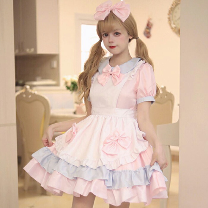 商品名:メイド服 コスプレ コンカフェ メイド 衣装 妹系 ピンクメイド 可愛いリボン メイドコスチューム ハロウィン仮装 レディース メンズ ハロウィンメイド イベント パーティー 大人 女装 ハロウィン 学園祭 撮影