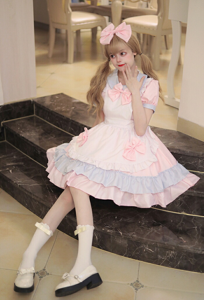 メイド服 コスプレ コンカフェ メイド 衣装 妹系 ピンクメイド 可愛いリボン メイドコスチューム ハロウィン仮装 レディース メンズ ハロウィンメイド イベント 大人 女装 ハロウィン パーティー