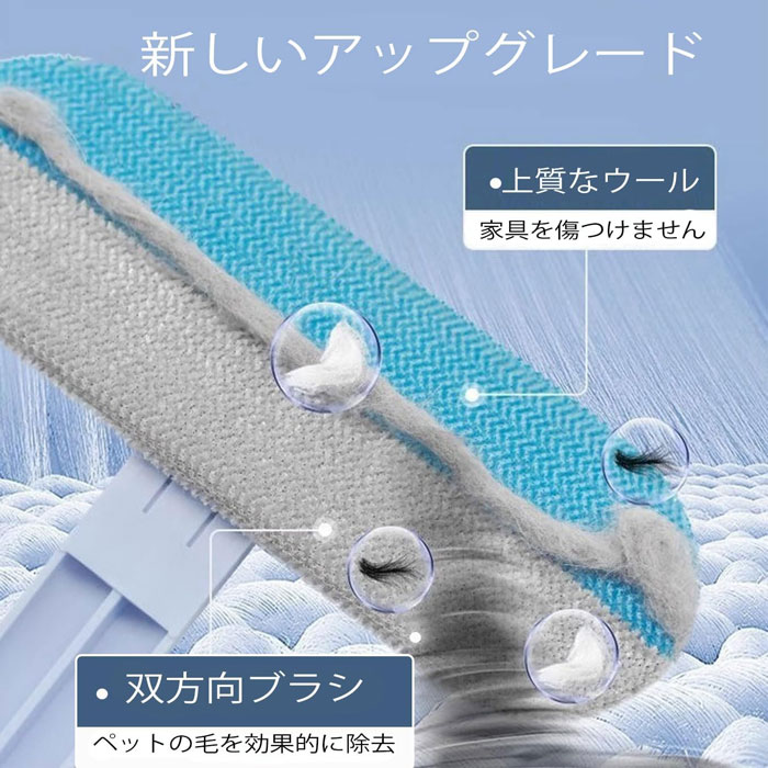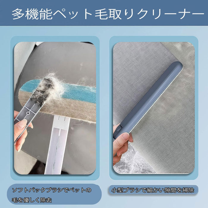 便利な多機能ブラシセット:ペット毛除去ヘッドには密集した双方向のブラシ毛を採用 45度の前後運動だけで、毛を効率的に集めることができ、布地を傷めることなくスムーズに取り除けます 充実のクリーニングセット柔らかい背面ブラシは抜け毛の除去に最適。さらに、狭い隙間用のテールブラシも付属。この3点セットで、ペットの毛を余すことなく取り除きます