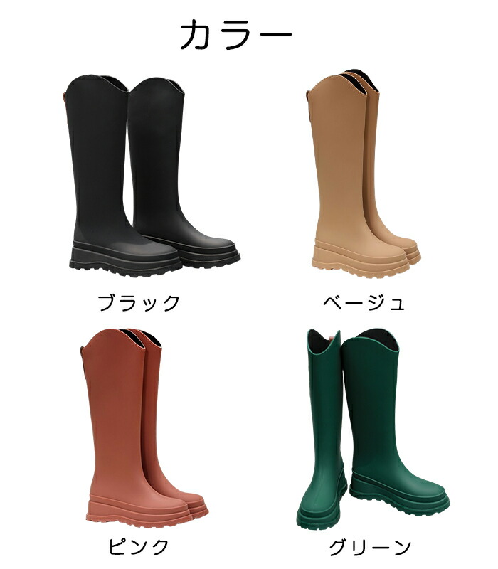 レインブーツ レディース ロング 防寒 レディース靴 レインシューズ 長靴 ブーツ 通販 ブラック ベージュ ピンク グリーン 36(内寸23.0cm) 37(内寸23.5cm) 38(内寸24.0cm) 39(内寸243.5cm) 40(内寸25.0cm) 41(内寸25.5cm)