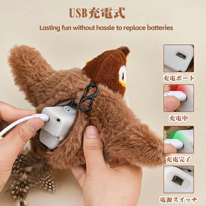 インタラクティブな猫のおもちゃ: 鳥の形をした猫のペット用おもちゃは、猫の自然な狩猟本能を満たし、猫を退屈から遠ざけるのに役立つ、友好的な「獲物」として猫を引き付けます。