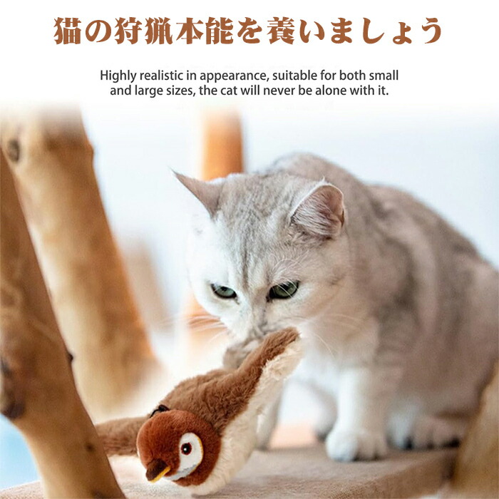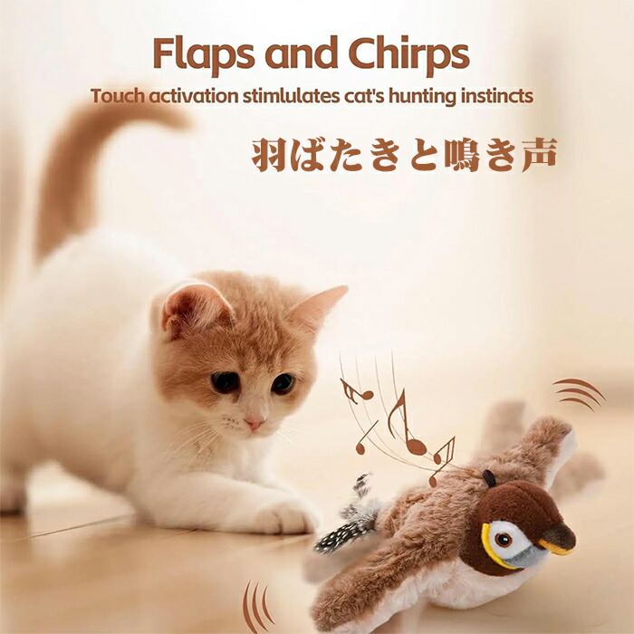 インタラクティブな鳥猫のおもちゃ 猫じゃらし 電動羽ばたきスズメ 羽付きバードティーザー 鮮やかな鳴き声を備えたシミュレーション飛行鳥 猫追いかけっこ遊びをするための魅力的な運動鳥カニ 魚 ぬ スズメ
