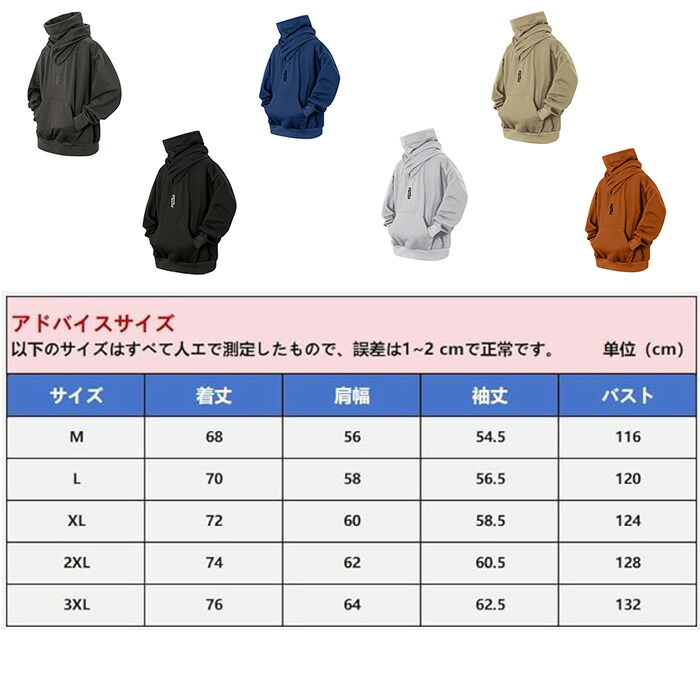 パーカー ボリュームネックパーカー メ トップス パーカー 新登場! ブラック グレー ライトグレー オレンジ カーキ ネイビー M L XL 2XL 3XL