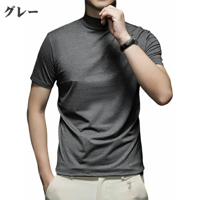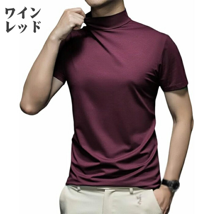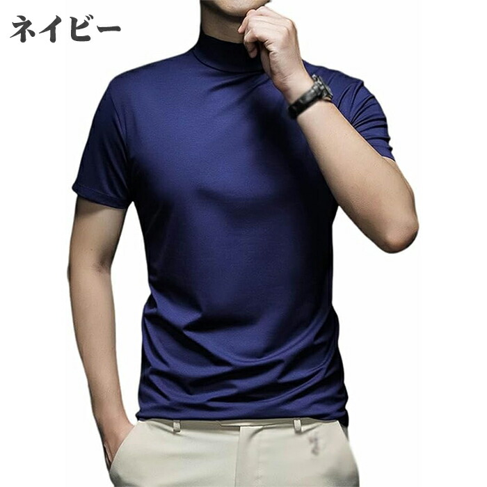 ハイネック シャツ半袖 Tシャツ トッ トップス Tシャツ カットソー 人気 ネイビー ワインレッド ホワイト ブラック グレー M L XL 2XL 3XL 4XL