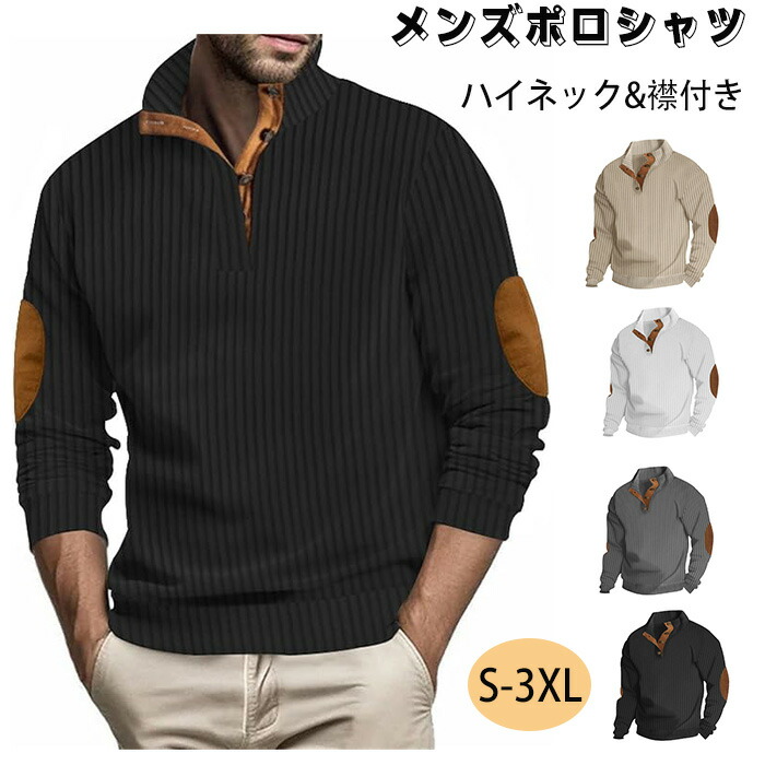 ポロシャツ メンズ スウェット長袖 ボ メンズファッション 続々入荷中 ホワイト ブラック ダークグレー カーキ S M L XL 2XL 3XL