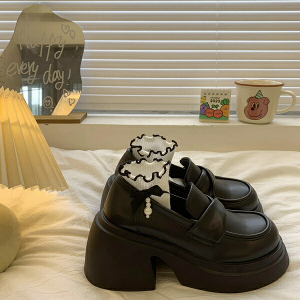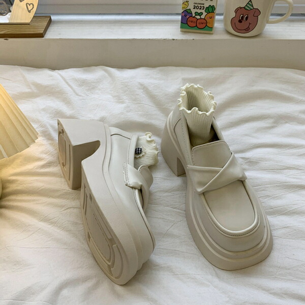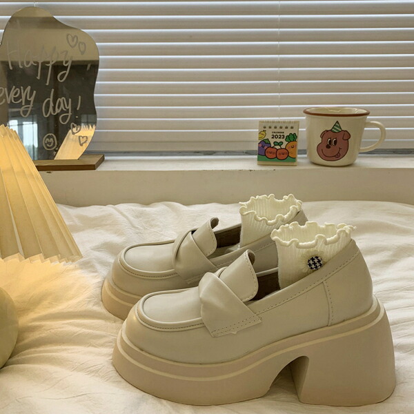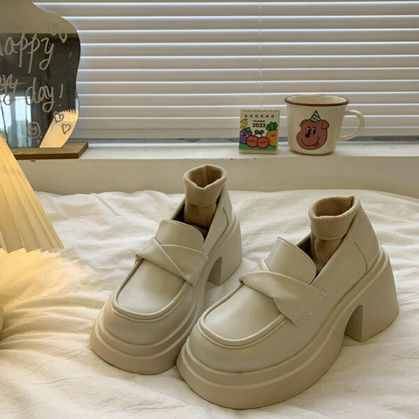 ローファー 厚底 パンプス 5cmヒー 靴 早い者勝ち ブラック オフホワイト 35(内寸22.5cm) 36(内寸23cm) 37(内寸23.5cm) 38(内寸24cm) 39(内寸24.5cm) 40(内寸25cm)