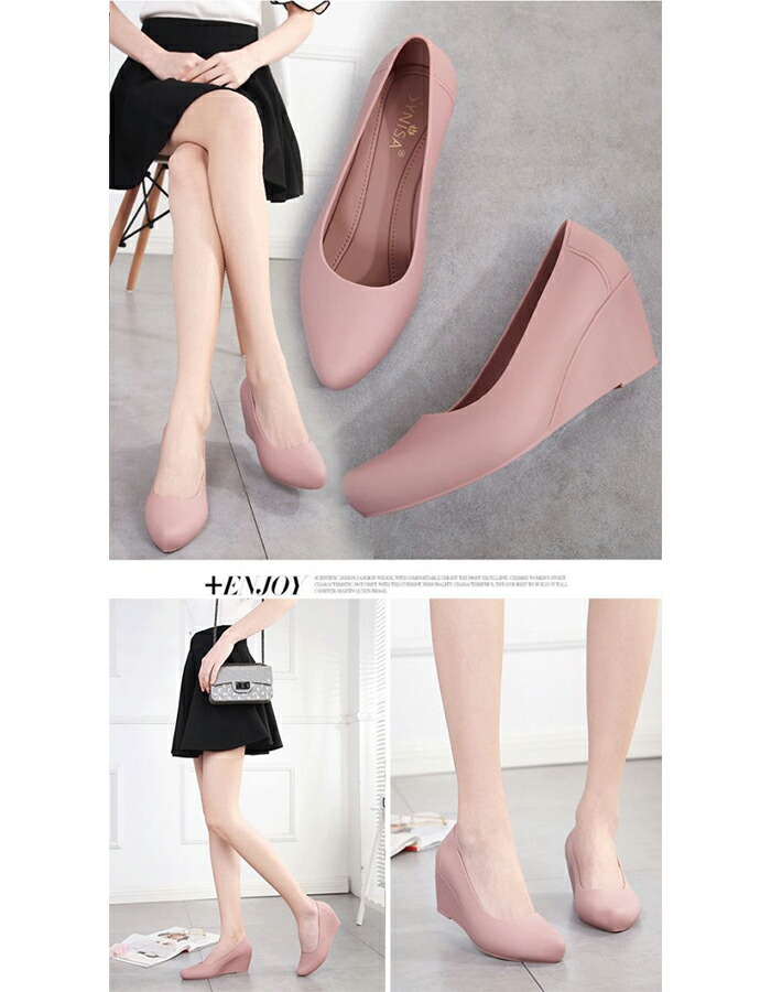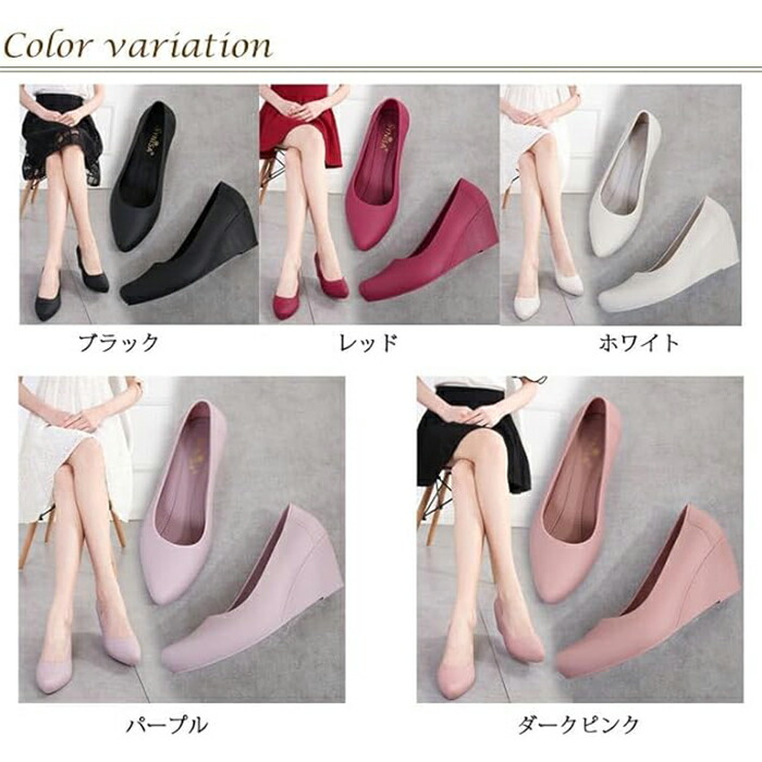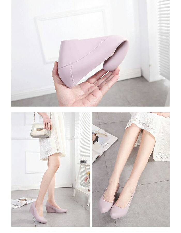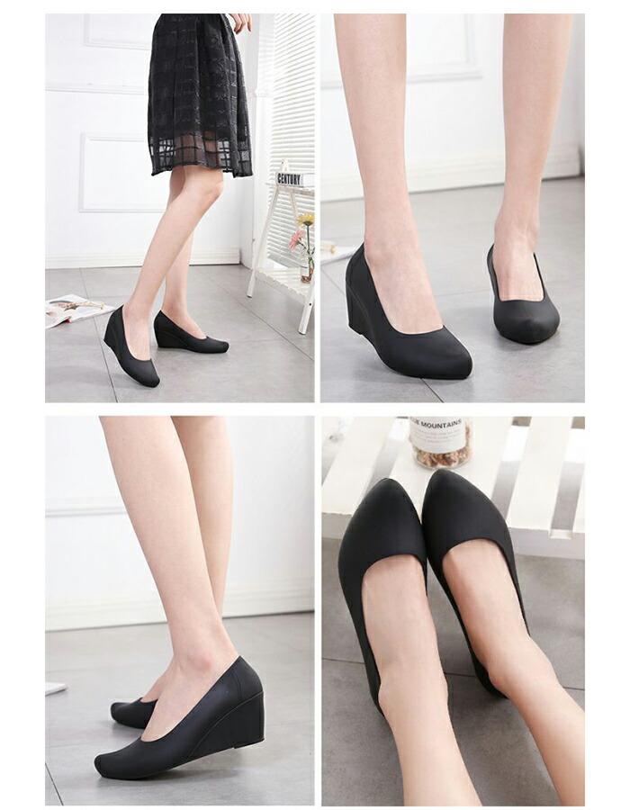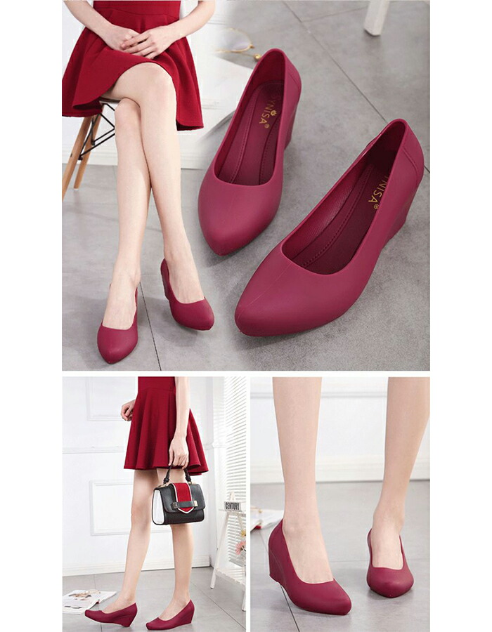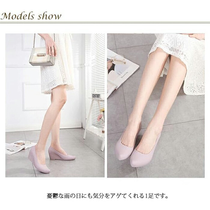 レインパンプス 防水シューズ レディース レインシューズ スリッポンファション雨晴兼用 パンプス 靴 ウェッジソール 6cmヒール 雨 雨の日 クッション 23-24.5cm 梅雨対策