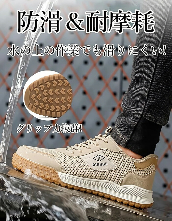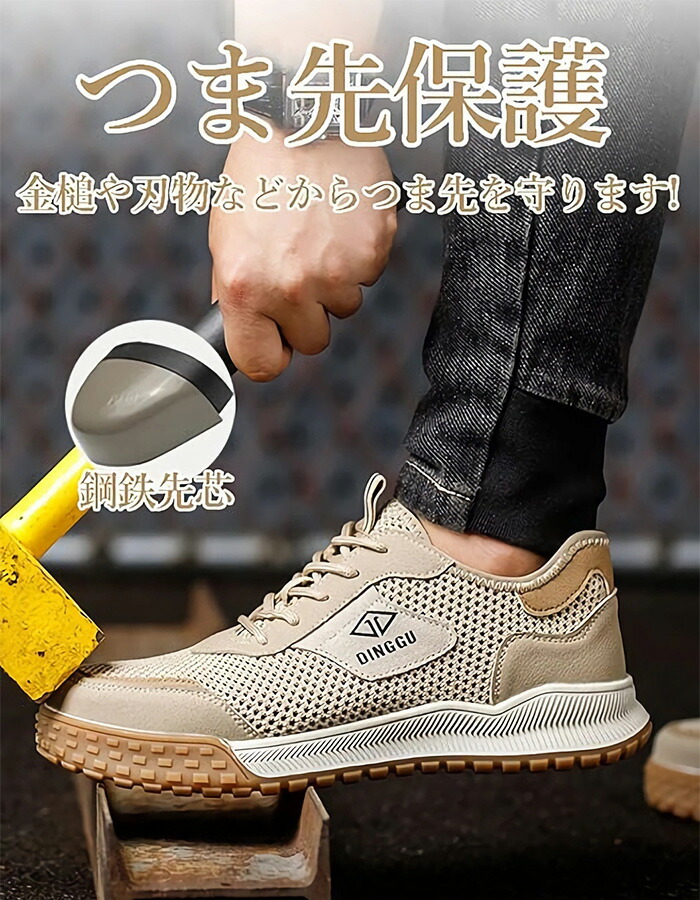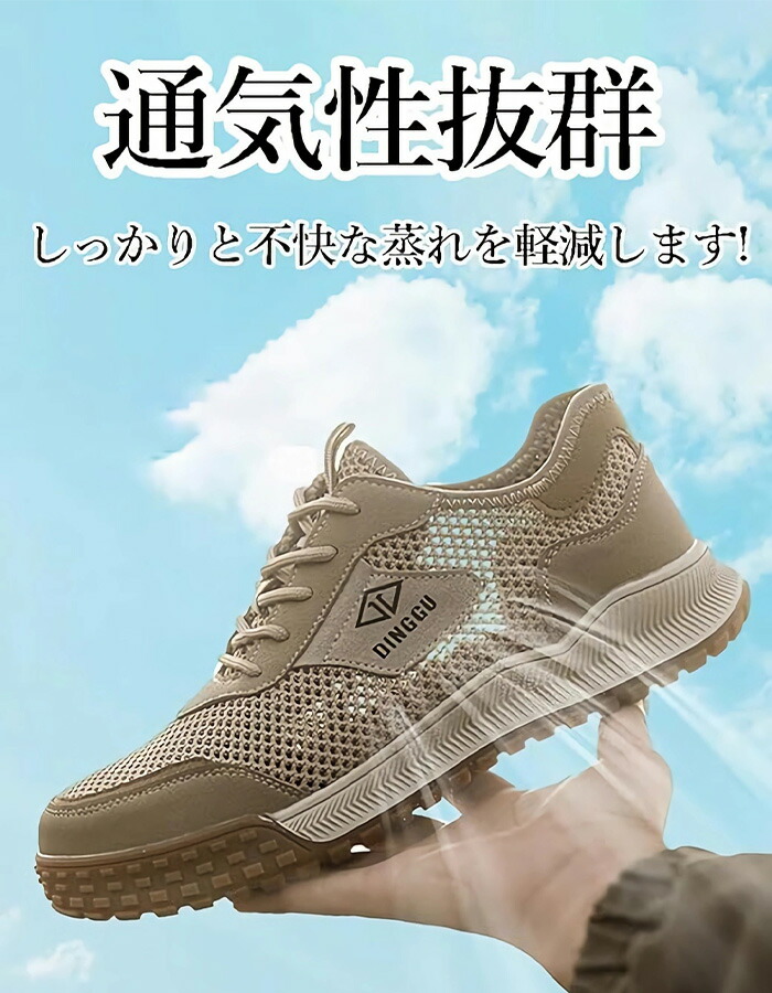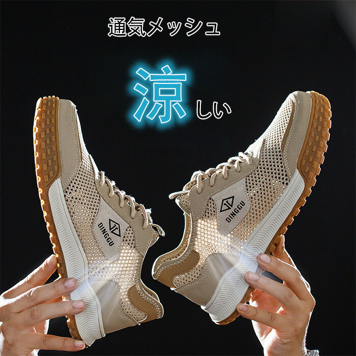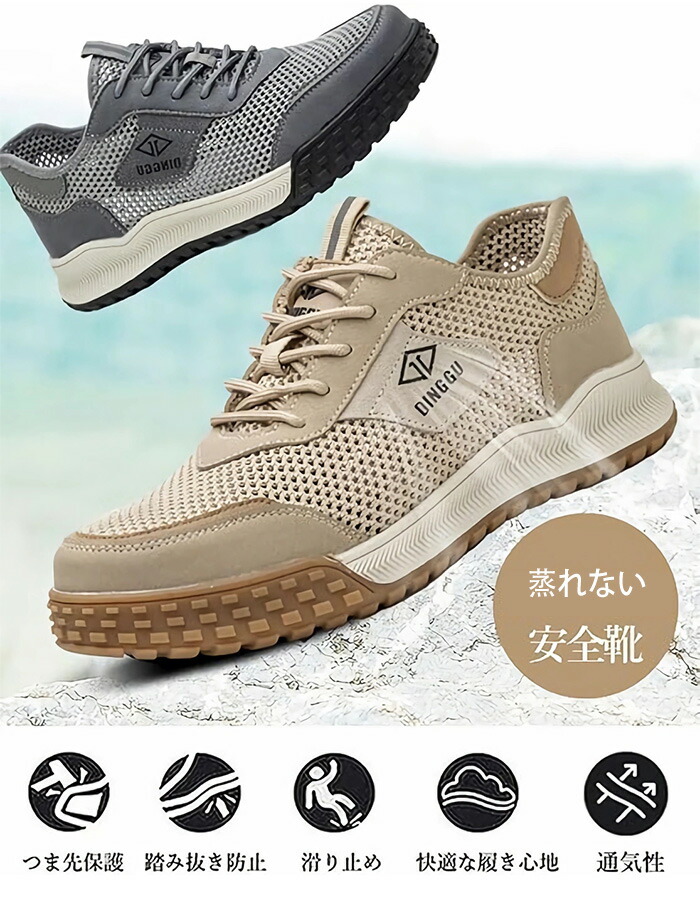 通気性 安全靴 夏用 作業靴 蒸れない カーキ グレー 38(内寸24cm) 39(内寸24.5cm) 40(内寸25cm) 41(内寸25.5cm) 42(内寸26cm) 43(内寸26.5cm) 44(内寸27cm) 45(内寸27.5cm)