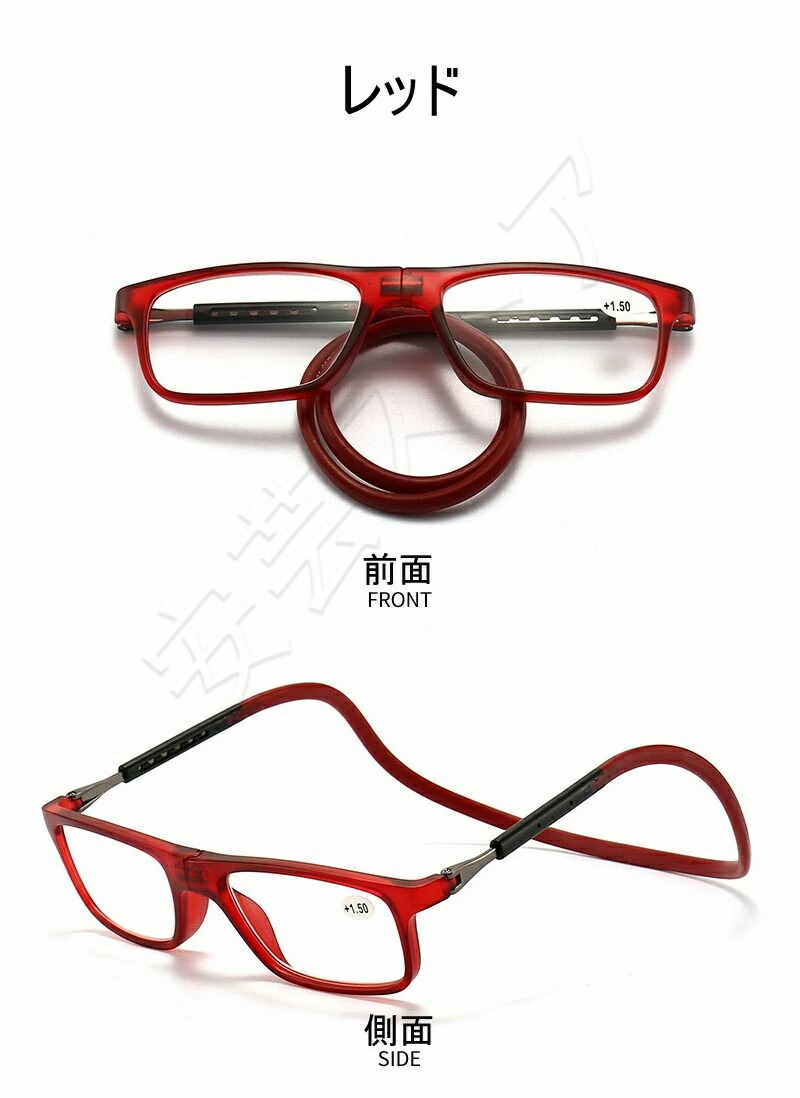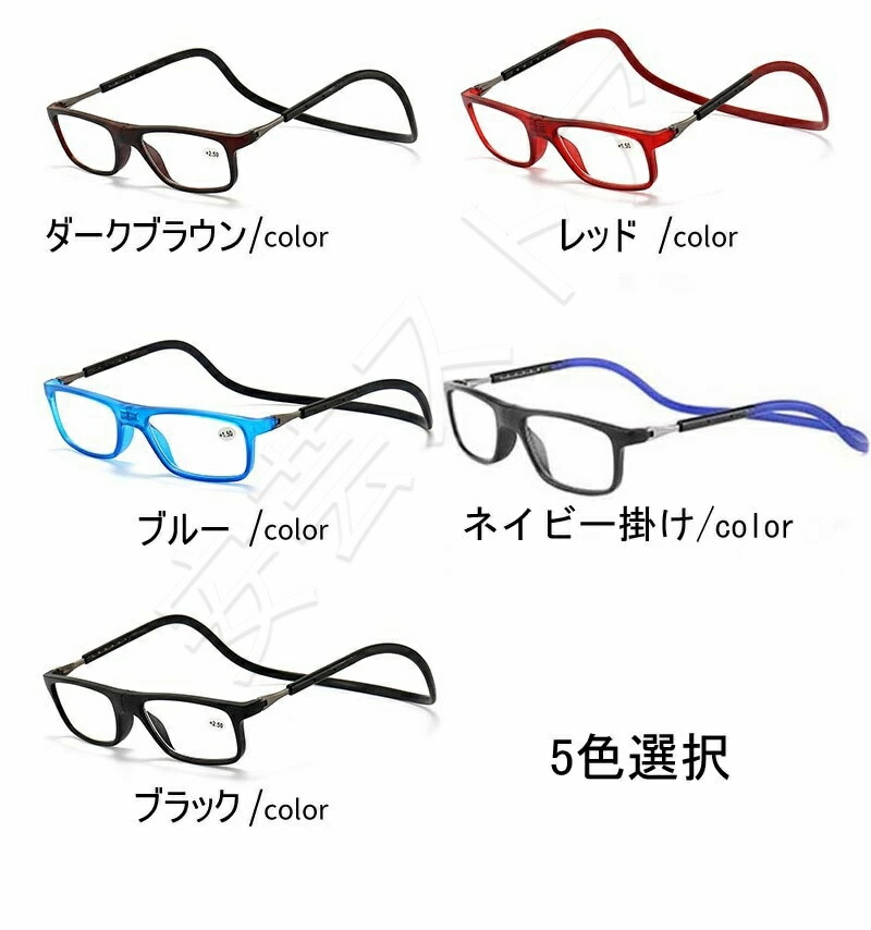 紛失防止老眼鏡 強力マグ スマート 首 眼鏡 サングラス 老眼鏡 人気 ダークブラウン レッド ブルー ネイビー掛け ブラック +1.00 +1.50 +2.00 +2.50 +3.00 +3.50 +4.00