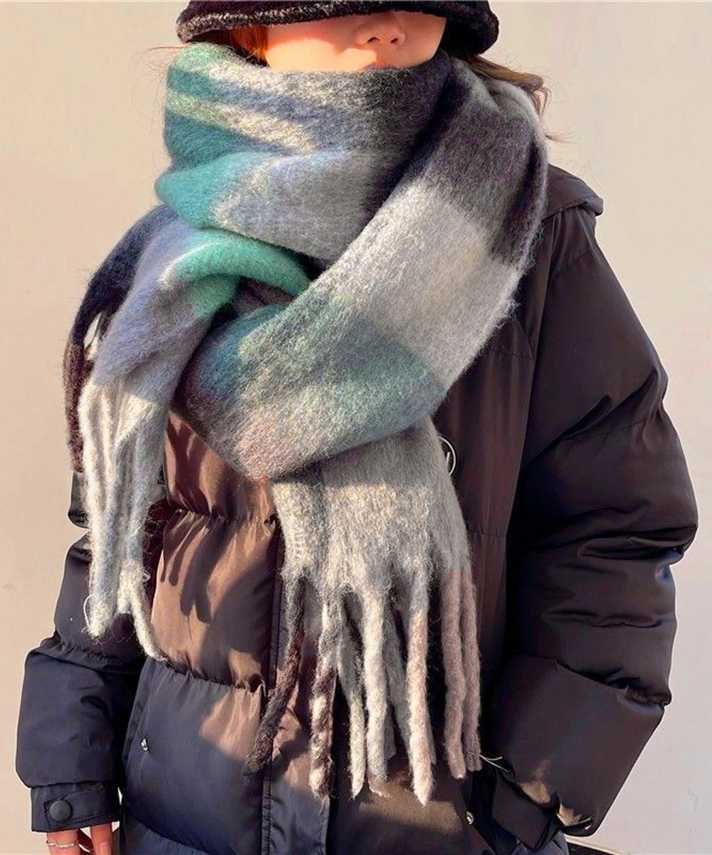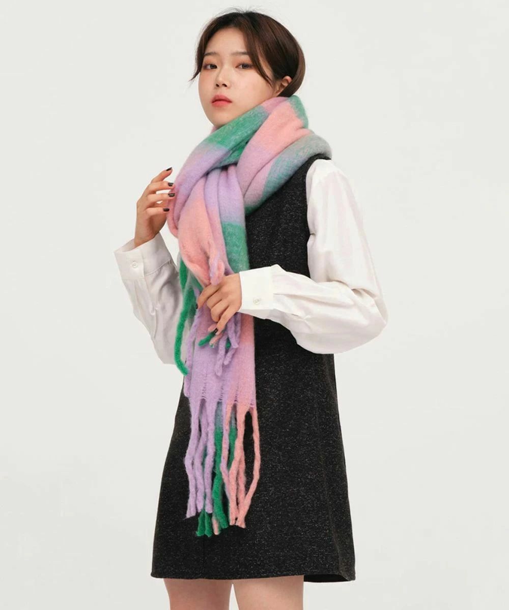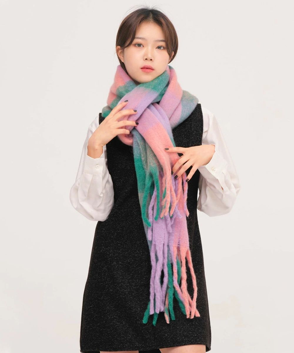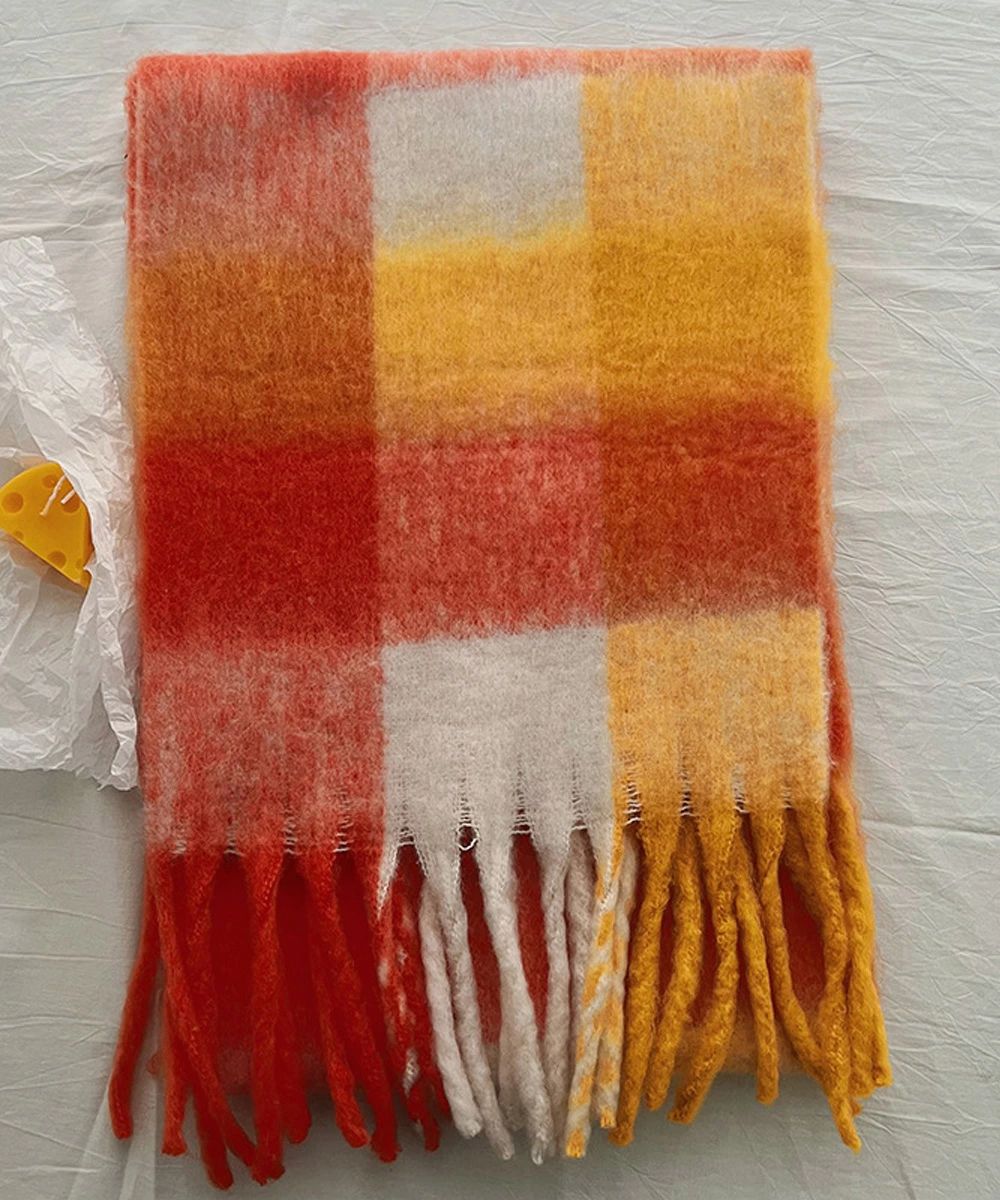 スカーフショール リバーシブル 秋冬暖 バッグ 小物 ブランド雑貨 通販 イエロー*ベージュ オレンジ*レッド グリーン*ピンク グレー*グリーン パープル*アイボリー ライトブルー*ブラウン