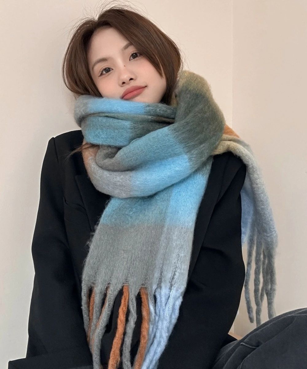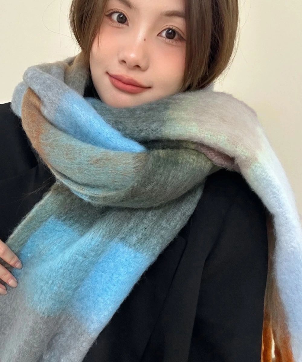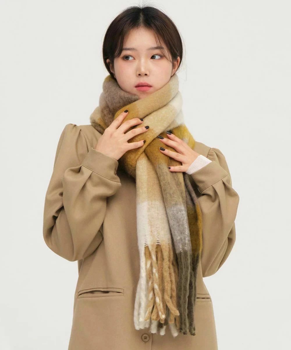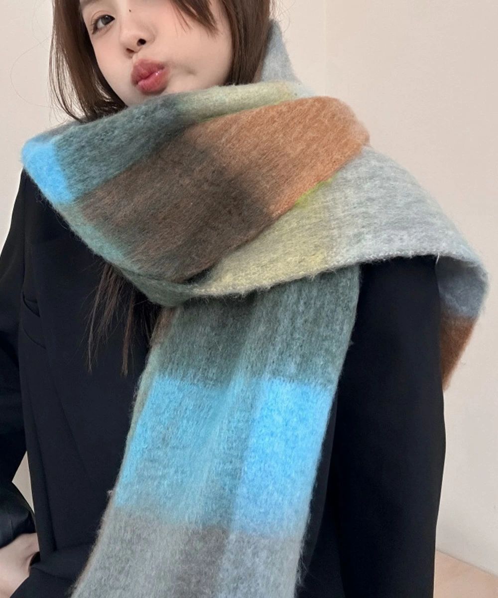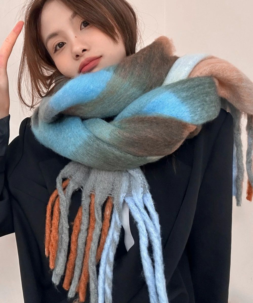 スカーフショール リバーシブル 秋冬暖 バッグ 小物 ブランド雑貨 通販 イエロー*ベージュ オレンジ*レッド グリーン*ピンク グレー*グリーン パープル*アイボリー ライトブルー*ブラウン